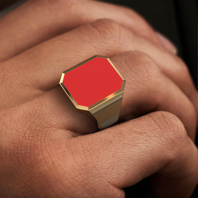 Der massive Lars 5 Siegelring mit 16x13 mm achteck Rot Emaille Oberfläche, wie oben gezeigt, ist voll von Tradition. Üblicherweise wurde der Siegelring vom Vater an den Sohn weitergegeben. Beginnen Sie Ihre eigene Tradition mit diesem massive, Gold Siegelring. Wir würden uns auch sehr freuen, Ihren Ring mit einem Monogramm oder einem Familienwappen gravieren zu dürfen. Bitte sehen Sie sich unsere Datenbank für weitere Anfragen und Optionen an. Sie können die Datenbank am unteren Rand dieser Seite finden. Beginnen Sie eine neue Tradition mit dem schicke Gold Lars 5 Siegelring. Der Luxus Lars 5 Siegelring, wie hier abgebildet, kann ganz nach Ihren Wünschen gestaltet werden. Unser Online-Tool bietet viele verschiedene Möglichkeiten. Bitte kontaktieren Sie uns, wenn Sie Änderungen an Ihrem Lars 5 Siegelring wünschen, die in unserem Online-Tool nicht verfügbar sind.Unsere Online-Kollektion wird täglich um neue Schmuckdesigns ergänzt. Unser Team von leidenschaftlichen Designern ist bemüht, außergewöhnliche und vielfältige Designs zu kreieren. Haben Sie einen Ring gesehen, der Ihnen gefällt? Setzen Sie sich mit uns in Verbindung. Basierend auf einem guten Preis/Leistungsverhältnis machen wir Ihnen ein Angebot, das Sie nicht ablehnen können!Da wir unsere eigenen Ringe entwerfen und liefern, können wir Ihnen einen Ring zu einem Preis anbieten, den Sie nirgendwo anders finden. Ein Ring wird auf Bestellung angefertigt, wodurch kein überschüssiges Material anfällt. So können wir Ihnen ein gutes Angebot zum besten Preis machen. Wir verstehen, dass es sich riskant anfühlt, Ihren Ring online zu kaufen. Jedoch helfen wir Ihnen gerne beim Designprozess unter Berücksichtigung Ihres Budgets.Um es einfacher zu machen, bieten wir eine kostenlose 30-tägige Rücksendung.