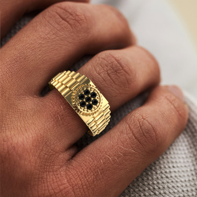 Jeder kennt das Design dieser bekannten Uhrenmarke. Mit 14 Karat Gold Verbindungen ist dieser massive Gold Nout Herrenring perfekt für trendige, erfolgreiche Männer geeignet. Ein Mann, der sich mit einem markanten Herrenring mit 0.252 crt Schwarz Diamant schmücken möchte. Zeigen Sie allen, woraus Sie gemacht sind!Unsere Goldschmiede kreieren Ihren individuellen Herrenring leidenschaftlich, mit größter Sorgfalt und nach Ihren Wünschen. Das Gold Herrenring, wie hier abgebildet, kann mit unserem Online-Tool individuell angepasst werden. Bitte fragen Sie unsere Schmuckdesigner um Hilfe, wenn Sie Änderungen wünschen, die in unserem Online-Tool nicht verfügbar sind. Gerne beantworten wir Ihnen alle offenen Fragen.Unsere Online-Kollektion wird täglich um neue Schmuckdesigns ergänzt. Unser Team von leidenschaftlichen Designern ist bemüht, außergewöhnliche und vielfältige Designs zu kreieren. Haben Sie einen Ring gesehen, der Ihnen gefällt? Setzen Sie sich mit uns in Verbindung. Basierend auf einem guten Preis/Leistungsverhältnis machen wir Ihnen ein Angebot, das Sie nicht ablehnen können!Mit unserer modernen Technik können wir Schmuckstücke von höchster Qualität mit größter Sorgfalt für Sie entwerfen und anpassen. Unsere Ringe sind immer um 30 Prozent günstiger als bei anderen Juwelieren. Wir fertigen Ringe auf Bestellung, also müssen wir keine großen Lager unterhalten. Wenn Sie ein bestimmtes Budget haben, beraten wir Sie gerne entsprechend.Um es einfacher zu machen, bieten wir eine kostenlose 30-tägige Rücksendung.