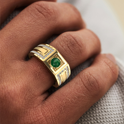 Sind Sie auf der Suche nach einem einzigartige Gold Herrenring, der etwas Besonderes ist? Dann ist unser rechteckige, Gold Lando Herrenring mit 4.7 mm rund Smaragd der perfekte Ring für Sie! Dieser Ring, wie hier gezeigt, ist aus Gold, kann aber nach Belieben angepasst werden. Mit diesem Gold Lando Herrenring mit Smaragd, einem Ring für ambitionierte Männer, können Sie allen zeigen, wer Sie sind. Wie gefällt Ihnen dieser einzigartige Gold Herrenring? Passen Sie diesen Lando Herrenring einfach mit unserem Online-Tool an. Anschließend wird Ihr persönlicher, reiche Lando Herrenring in Handarbeit von unseren Goldschmieden angefertigt. Edelmetalle und Edelsteine können nach Ihren Wünschen angepasst werden. Haben Sie spezielle Wünsche, die in unserem Online-Tool nicht verfügbar sind? Setzen Sie sich mit uns in Verbindung. Wir passen Ihren persönlichen einzigartige Herrenring nach Ihren Wünschen an.Unsere Online-Kollektion wird täglich um neue Schmuckdesigns ergänzt. Unser Team von leidenschaftlichen Designern ist bemüht, außergewöhnliche und vielfältige Designs zu kreieren. Haben Sie einen Ring gesehen, der Ihnen gefällt? Setzen Sie sich mit uns in Verbindung. Basierend auf einem guten Preis/Leistungsverhältnis machen wir Ihnen ein Angebot, das Sie nicht ablehnen können!Da wir unsere eigenen Ringe entwerfen und liefern, können wir Ihnen einen Ring zu einem Preis anbieten, den Sie nirgendwo anders finden. Ein Ring wird auf Bestellung angefertigt, wodurch kein überschüssiges Material anfällt. So können wir Ihnen ein gutes Angebot zum besten Preis machen. Wir verstehen, dass es sich riskant anfühlt, Ihren Ring online zu kaufen. Jedoch helfen wir Ihnen gerne beim Designprozess unter Berücksichtigung Ihres Budgets.Um es einfacher zu machen, bieten wir eine kostenlose 30-tägige Rücksendung.