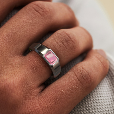 Sind Sie auf der Suche nach einem exklusive Weißgold Herrenring, der etwas Besonderes ist? Dann ist unser rechteckige, Weißgold Dylan 1 Herrenring mit 7x5 mm smaragd schliff Turmalin rosa der perfekte Ring für Sie! Dieser Ring, wie hier gezeigt, ist aus Weißgold, kann aber nach Belieben angepasst werden. Mit diesem Weißgold Dylan 1 Herrenring mit Turmalin rosa, einem Ring für ambitionierte Männer, können Sie allen zeigen, wer Sie sind. Unsere Goldschmiede kreieren Ihren individuellen Herrenring leidenschaftlich, mit größter Sorgfalt und nach Ihren Wünschen. Das Weißgold Herrenring, wie hier abgebildet, kann mit unserem Online-Tool individuell angepasst werden. Bitte fragen Sie unsere Schmuckdesigner um Hilfe, wenn Sie Änderungen wünschen, die in unserem Online-Tool nicht verfügbar sind. Gerne beantworten wir Ihnen alle offenen Fragen.Unser Team von talentierten, leidenschaftlichen Designern fügt unserer Online-Kollektion täglich neue Ringe-Designs hinzu. Unser Ziel dabei ist es, Ihnen eine große Vielfalt an Schmuckstücken anbieten zu können. Bitte zögern Sie nicht, ein Angebot anzufordern, wenn Sie spezielle Wünsche für Ihren Ring haben. Wir garantieren Ihnen ein Angebot, das Sie nicht ablehnen können.Durch die Kombination modernster Technik mit uralter Handwerkskunst können wir alle Ringe in unserem eigenen Studio anfertigen. Jedes Schmuckstück wird auf Anfrage gefertigt. Das ist vorteilhaft, weil wir Ihnen dadurch einen Preis anbieten können, den Sie nirgendwo anders finden.Um es einfacher zu machen, bieten wir eine kostenlose 30-tägige Rücksendung.