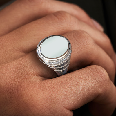 Der massive Luuk Siegelring mit 15x12 mm oval form grüner Lagenstein Oberfläche, wie oben gezeigt, ist voll von Tradition. Üblicherweise wurde der Siegelring vom Vater an den Sohn weitergegeben. Beginnen Sie Ihre eigene Tradition mit diesem massive, Weißgold Siegelring. Wir würden uns auch sehr freuen, Ihren Ring mit einem Monogramm oder einem Familienwappen gravieren zu dürfen. Bitte sehen Sie sich unsere Datenbank für weitere Anfragen und Optionen an. Sie können die Datenbank am unteren Rand dieser Seite finden. Beginnen Sie eine neue Tradition mit dem einzigartige Weißgold Luuk Siegelring. Wie gefällt Ihnen dieser einzigartige Weißgold Siegelring? Passen Sie diesen Luuk Siegelring einfach mit unserem Online-Tool an. Anschließend wird Ihr persönlicher, besondere Luuk Siegelring in Handarbeit von unseren Goldschmieden angefertigt. Edelmetalle und Edelsteine können nach Ihren Wünschen angepasst werden. Haben Sie spezielle Wünsche, die in unserem Online-Tool nicht verfügbar sind? Setzen Sie sich mit uns in Verbindung. Wir passen Ihren persönlichen einzigartige Siegelring nach Ihren Wünschen an.Unsere Online-Kollektion wird täglich um neue Schmuckdesigns ergänzt. Unser Team von leidenschaftlichen Designern ist bemüht, außergewöhnliche und vielfältige Designs zu kreieren. Haben Sie einen Ring gesehen, der Ihnen gefällt? Setzen Sie sich mit uns in Verbindung. Basierend auf einem guten Preis/Leistungsverhältnis machen wir Ihnen ein Angebot, das Sie nicht ablehnen können!Durch die Kombination modernster Technik mit uralter Handwerkskunst können wir alle Ringe in unserem eigenen Studio anfertigen. Jedes Schmuckstück wird auf Anfrage gefertigt. Das ist vorteilhaft, weil wir Ihnen dadurch einen Preis anbieten können, den Sie nirgendwo anders finden.Um es einfacher zu machen, bieten wir eine kostenlose 30-tägige Rücksendung.