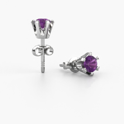 Solitär Ohrsteckers sind klassische und doch modische Schmuckstücke. Bei Solitär Ohrsteckers sind die Krappen offen und es wird nur ein Stein gesetzt, der das Licht aus jedem Blickwinkel reflektiert. Weil der Amethyst höher positioniert ist, werden diese klassische Ohrsteckers zu einem wahren Blickfang. Wir fertigen jedes Detail dieser Solitär Ohrsteckers sorgfältig von Hand. Unsere erfahrenen Goldschmiede setzen die Amethysten mit höchster Präzision in diese Weißgold Ohrsteckers, so dass Licht von allen Seiten gleichmäßig reflektiert wird. Die Ohrsteckers sind mit 4 mm rund Amethysten besetzt. Die Shana die Ohrringe werden von unserem Goldschmiedemeister in unserem eigenen Studio für Sie angefertigt.. Unsere Goldschmiede kreieren Ihre individuelle Ohrsteckers leidenschaftlich, mit größter Sorgfalt und nach Ihren Wünschen. Das Weißgold Ohrsteckers-Set, wie hier abgebildet, kann mit unserem Online-Tool individuell angepasst werden. Bitte fragen Sie unsere Schmuckdesigner um Hilfe, wenn Sie Änderungen wünschen, die in unserem Online-Tool nicht verfügbar sind. Gerne beantworten wir Ihnen alle offenen Fragen. Haben Sie ein bestimmtes Budget? Sie können uns gerne kontaktieren, damit wir Ihre Optionen besprechen können. Wir bieten unsere Ohrsteckers zum garantiert besten Preis, denn wir fertigen sie auf Bestellung. Solche Preise finden Sie nirgendwo anders! Um es einfacher zu machen, bieten wir eine kostenlose 30-tägige Rücksendung.