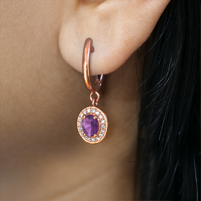 Mit einem Paar exklusiver Ohrhänger sticht jede Frau aus der Menge hervor. Bei DiamondsByMe kreieren wir exklusive und außergewöhnlichen Schmuck, und wir verwenden nur die besten Edelmetalle und Edelsteine. Diese exklusiven Roségold Ohrhänger sind ein wahres Kunstwerk! Jedes kleine Detail wurde von unserem erfahrenen Juwelier mit Geduld und Leidenschaft gefertigt. Das erfordert ein scharfes Auge und eine geschickte Hand, damit der Ring sorgfältig zur Perfektion gebracht wird. Und genau darum bemühen sich unsere erfahrenen Goldschmiede- Perfektion! Der exquisite Amethysten sind so gefasst, dass sie noch heller strahlen. Das verleiht den charmant Ohrhänger einen zusätzlichen, glamourösen Look. Oben abgebildet sind unsere Roségold Nakita Ohrhänger mit oval Amethysten. Die Nakita die Ohrringe werden von unserem Goldschmiedemeister in unserem eigenen Studio für Sie angefertigt.. Sobald Sie Ihren exklusive Ohrhänger mit unserem Online-Tool fertiggestellt haben, beginnen unsere Goldschmiede mit der kreativen Anfertigung Ihrer Ohrhänger. Dieser wird mit Leidenschaft und Sorgfalt nach alter Handwerkskunst gefertigt. Darüber hinaus sind unsere Edelsteine ehrlich gewonnen. Wenn Sie spezielle Änderungen an Ihren Nakita Ohrhänger vornehmen möchten, die in unserem Online-Tool nicht verfügbar sind, wenden Sie sich bitte an unsere Experten. Nach Erhalt Ihrer Bestellung beginnen unsere Goldschmiede mit Leidenschaft den kreativen Prozess und fertigen Ihre Ohrhänger in unserem eigenen Studio. Da wir keine großen Lager haben, werden diese Kosten nicht an Sie weitergegeben. Unsere Preisgestaltung ist der Beweis dafür! Wir bieten Schmuck zum niedrigsten Preis, garantiert. Um es einfacher zu machen, bieten wir eine kostenlose 30-tägige Rücksendung.