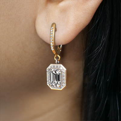 Mit einem Paar exklusiver Ohrhänger sticht jede Frau aus der Menge hervor. Bei DiamondsByMe kreieren wir exklusive und außergewöhnlichen Schmuck, und wir verwenden nur die besten Edelmetalle und Edelsteine. Diese exklusiven Weißgold Ohrhänger sind ein wahres Kunstwerk! Jedes kleine Detail wurde von unserem erfahrenen Juwelier mit Geduld und Leidenschaft gefertigt. Das erfordert ein scharfes Auge und eine geschickte Hand, damit der Ring sorgfältig zur Perfektion gebracht wird. Und genau darum bemühen sich unsere erfahrenen Goldschmiede- Perfektion! Der exquisite Diamanten sind so gefasst, dass sie noch heller strahlen. Das verleiht den Halo Ohrhänger einen zusätzlichen, glamourösen Look. Oben abgebildet sind unsere Weißgold Dodie 2 Ohrhänger mit smaragd schliff Diamanten. Die Dodie 2 die Ohrringe werden von unserem Goldschmiedemeister in unserem eigenen Studio für Sie angefertigt.. Wie gefällt Ihnen diese exklusive Weißgold Ohrhänger? Passen Sie diesen Dodie 2 Ohrhänger einfach mit unserem Online-Tool an. Anschließend wird Ihr persönliche, Halo Dodie 2 Ohrhänger in Handarbeit von unseren Goldschmieden angefertigt. Edelmetalle und Edelsteine können nach Ihren Wünschen angepasst werden. Haben Sie spezielle Wünsche, die in unserem Online-Tool nicht verfügbar sind? Setzen Sie sich mit uns in Verbindung. Wir passen Ihre persönliche exklusive Ohrhänger nach Ihren Wünschen an. Haben Sie ein bestimmtes Budget? Sie können uns gerne kontaktieren, damit wir Ihre Optionen besprechen können. Wir bieten unsere Ohrhänger zum garantiert besten Preis, denn wir fertigen sie auf Bestellung. Solche Preise finden Sie nirgendwo anders! Um es einfacher zu machen, bieten wir eine kostenlose 30-tägige Rücksendung.