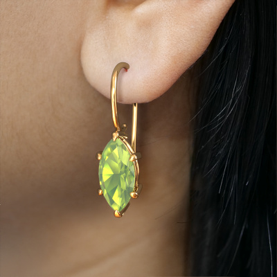 Wenn Sie nach trendige und persönlichen Ohrhänger suchen, dann werden Ihnen diese perfekt passen. Sie haben die Möglichkeit, diesen Ohrhängern Ihre Geburtssteine hinzuzufügen. Jeder Monat hat seinen eigenen Geburtsstein. Sie können Ihren eigenen Geburtsstein oder den Ihrer Kinder verwenden. Ein unbezahlbares Geschenk, auch wenn es für Sie selbst ist. Unser erfahrener Juwelier wird die ausgewählten Steine mit äußerster Präzision in Ihre Ohrhänger setzen, so dass das Licht aus allen Blickwinkeln gleichmäßig reflektiert wird. Hier wurden 12x6 mm marquise Peridot verwendet, um diese Gold gewagte Cleo MRQ Ohrhänger zu schmücken. Die Cleo MRQ Ohrringe werden gemacht, um Ihre Ohren zu verschönern. Jedes Schmuckstück wird von unseren Goldschmieden liebevoll von Hand gefertigt.. Was könnte schöner sein, als persönlich gestaltete, trendige Ohrhänger, nur für Sie handgefertigt? Sie können gerne jedes Modell anpassen, indem Sie verschiedene Edelmetalle und Edelsteine wählen. Das macht Ihren Ohrhänger wirklich einzigartig. Diese Ohrhänger kann nach Ihren Wünschen angepasst werden. Selbstverständlich können Sie auch uns fragen. Gerne sind wir Ihnen bei der Gestaltung Ihren trendige Ohrhänger behilflich. Wenn Sie immer noch spezielle Wünsche bezüglich der Anpassung Ihres Designs haben, wie zum Beispiel das Hinzufügen eines Edelsteins, der nicht in der Liste aufgeführt ist, können Sie uns gerne kontaktieren. Wir informieren Sie gerne über verschiedene Möglichkeiten. Da wir unseren eigenen Schmuckstücken entwerfen und liefern, können wir Ihnen Ohrhänger zu einem Preis anbieten, den Sie nirgendwo anders finden. Ohrhänger werden auf Bestellung angefertigt, wodurch kein überschüssiges Material anfällt. So können wir Ihnen ein gutes Angebot zum besten Preis machen. Wir verstehen, dass es sich riskant anfühlt, Ihre Ohrhänger online zu kaufen. Jedoch helfen wir Ihnen gerne beim Designprozess unter Berücksichtigung Ihres Budgets.Um es einfacher zu machen, bieten wir eine kostenlose 30-tägige Rücksendung.