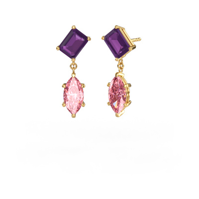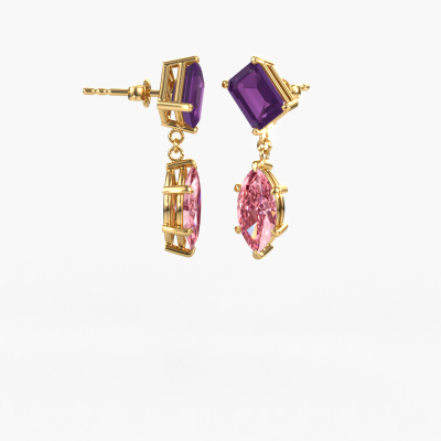 Mit einem Paar exklusiver Ohrhänger sticht jede Frau aus der Menge hervor. Bei DiamondsByMe kreieren wir modische und außergewöhnlichen Schmuck, und wir verwenden nur die besten Edelmetalle und Edelsteine. Diese exklusiven Gold Ohrhänger sind ein wahres Kunstwerk! Jedes kleine Detail wurde von unserem erfahrenen Juwelier mit Geduld und Leidenschaft gefertigt. Das erfordert ein scharfes Auge und eine geschickte Hand, damit der Ring sorgfältig zur Perfektion gebracht wird. Und genau darum bemühen sich unsere erfahrenen Goldschmiede- Perfektion! Die exquisiten Amethysten sind so gefasst, dass sie noch heller strahlen. Das verleiht den besondere Ohrhänger einen zusätzlichen, glamourösen Look. Oben abgebildet sind unsere Gold Toi et Moi EME MRQ Ohrhänger mit smaragd schliff Amethysten. Die Toi et Moi EME MRQ Ohrringe sind einzigartige Schmuckstücke, weil sie nach Ihren Wünschen angefertigt werden können.. Was könnte schöner sein, als persönlich gestaltete, modische Ohrhänger, nur für Sie handgefertigt? Sie können gerne jedes Modell anpassen, indem Sie verschiedene Edelmetalle und Edelsteine wählen. Das macht Ihren Ohrhänger wirklich einzigartig. Diese Ohrhänger kann nach Ihren Wünschen angepasst werden. Selbstverständlich können Sie auch uns fragen. Gerne sind wir Ihnen bei der Gestaltung Ihren modische Ohrhänger behilflich. Wenn Sie immer noch spezielle Wünsche bezüglich der Anpassung Ihres Designs haben, wie zum Beispiel das Hinzufügen eines Edelsteins, der nicht in der Liste aufgeführt ist, können Sie uns gerne kontaktieren. Wir informieren Sie gerne über verschiedene Möglichkeiten. Da wir unseren eigenen Schmuckstücken entwerfen und liefern, können wir Ihnen Ohrhänger zu einem Preis anbieten, den Sie nirgendwo anders finden. Ohrhänger werden auf Bestellung angefertigt, wodurch kein überschüssiges Material anfällt. So können wir Ihnen ein gutes Angebot zum besten Preis machen. Wir verstehen, dass es sich riskant anfühlt, Ihre Ohrhänger online zu kaufen. Jedoch helfen wir Ihnen gerne beim Designprozess unter Berücksichtigung Ihres Budgets. Um es einfacher zu machen, bieten wir eine kostenlose 30-tägige Rücksendung.