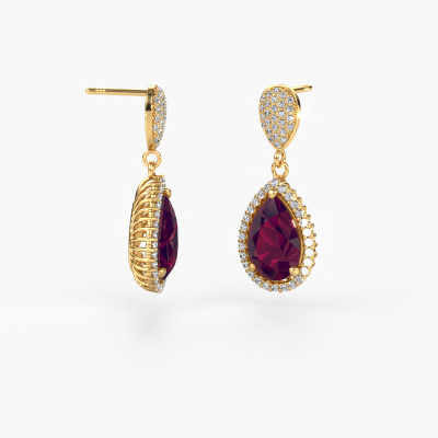 Mit einem Paar exklusiver Ohrhänger sticht jede Frau aus der Menge hervor. Bei DiamondsByMe kreieren wir exklusive und außergewöhnlichen Schmuck, und wir verwenden nur die besten Edelmetalle und Edelsteine. Diese exklusiven Gold Ohrhänger sind ein wahres Kunstwerk! Jedes kleine Detail wurde von unserem erfahrenen Juwelier mit Geduld und Leidenschaft gefertigt. Das erfordert ein scharfes Auge und eine geschickte Hand, damit der Ring sorgfältig zur Perfektion gebracht wird. Und genau darum bemühen sich unsere erfahrenen Goldschmiede- Perfektion! Die exquisiten Rhodolit sind so gefasst, dass sie noch heller strahlen. Das verleiht den besondere Ohrhänger einen zusätzlichen, glamourösen Look. Oben abgebildet sind unsere Gold Tilly per 2 Ohrhänger mit tropfen Rhodolit. Die Tilly per 2 Ohrringe werden von einem Team leidenschaftlicher Goldschmiede und Designer angefertigt. Das wird Ihr einzigartiges Kronjuwel wirklich zu einem Blickfang machen.. Unsere Goldschmiede kreieren Ihre individuelle Ohrhänger leidenschaftlich, mit größter Sorgfalt und nach Ihren Wünschen. Das Gold Ohrhänger-Set, wie hier abgebildet, kann mit unserem Online-Tool individuell angepasst werden. Bitte fragen Sie unsere Schmuckdesigner um Hilfe, wenn Sie Änderungen wünschen, die in unserem Online-Tool nicht verfügbar sind. Gerne beantworten wir Ihnen alle offenen Fragen. Haben Sie ein bestimmtes Budget? Sie können uns gerne kontaktieren, damit wir Ihre Optionen besprechen können. Wir bieten unsere Ohrhänger zum garantiert besten Preis, denn wir fertigen sie auf Bestellung. Solche Preise finden Sie nirgendwo anders! Um es einfacher zu machen, bieten wir eine kostenlose 30-tägige Rücksendung.