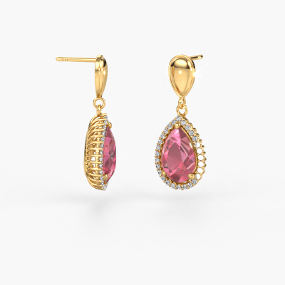 Mit einem Paar exklusiver Ohrhänger sticht jede Frau aus der Menge hervor. Bei DiamondsByMe kreieren wir exklusive und außergewöhnlichen Schmuck, und wir verwenden nur die besten Edelmetalle und Edelsteine. Diese exklusiven Gold Ohrhänger sind ein wahres Kunstwerk! Jedes kleine Detail wurde von unserem erfahrenen Juwelier mit Geduld und Leidenschaft gefertigt. Das erfordert ein scharfes Auge und eine geschickte Hand, damit der Ring sorgfältig zur Perfektion gebracht wird. Und genau darum bemühen sich unsere erfahrenen Goldschmiede- Perfektion! Die exquisiten Turmalin rosa sind so gefasst, dass sie noch heller strahlen. Das verleiht den Tropf Ohrhänger einen zusätzlichen, glamourösen Look. Oben abgebildet sind unsere Gold Tilly per 1 Ohrhänger mit tropfen Turmalin rosa. Die Tilly per 1 die Ohrringe werden von unserem Goldschmiedemeister in unserem eigenen Studio für Sie angefertigt.. Sobald Sie Ihren exklusive Ohrhänger mit unserem Online-Tool fertiggestellt haben, beginnen unsere Goldschmiede mit der kreativen Anfertigung Ihrer Ohrhänger. Dieser wird mit Leidenschaft und Sorgfalt nach alter Handwerkskunst gefertigt. Darüber hinaus sind unsere Edelsteine ehrlich gewonnen. Wenn Sie spezielle Änderungen an Ihren Tilly per 1 Ohrhänger vornehmen möchten, die in unserem Online-Tool nicht verfügbar sind, wenden Sie sich bitte an unsere Experten. Da wir unseren eigenen Schmuckstücken entwerfen und liefern, können wir Ihnen Ohrhänger zu einem Preis anbieten, den Sie nirgendwo anders finden. Ohrhänger werden auf Bestellung angefertigt, wodurch kein überschüssiges Material anfällt. So können wir Ihnen ein gutes Angebot zum besten Preis machen. Wir verstehen, dass es sich riskant anfühlt, Ihre Ohrhänger online zu kaufen. Jedoch helfen wir Ihnen gerne beim Designprozess unter Berücksichtigung Ihres Budgets. Um es einfacher zu machen, bieten wir eine kostenlose 30-tägige Rücksendung.