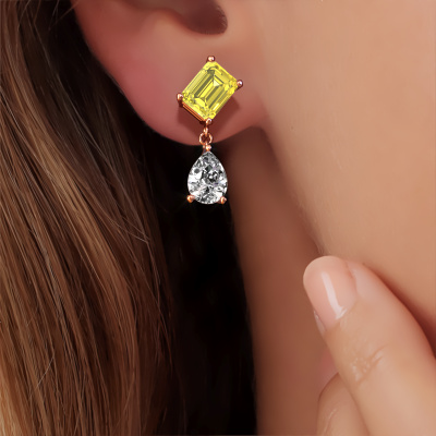 Mit einem Paar exklusiver Ohrringe sticht jede Frau aus der Menge hervor. Bei DiamondsByMe kreieren wir Luxus und außergewöhnlichen Schmuck, und wir verwenden nur die besten Edelmetalle und Edelsteine. Diese exklusiven Roségold Ohrringe sind ein wahres Kunstwerk! Jedes kleine Detail wurde von unserem erfahrenen Juwelier mit Geduld und Leidenschaft gefertigt. Das erfordert ein scharfes Auge und eine geschickte Hand, damit der Ring sorgfältig zur Perfektion gebracht wird. Und genau darum bemühen sich unsere erfahrenen Goldschmiede- Perfektion! Der exquisite gelber Labor Diamanten sind so gefasst, dass sie noch heller strahlen. Das verleiht den hängend Ohrringe einen zusätzlichen, glamourösen Look. Oben abgebildet sind unsere Roségold Toi et Moi EME PER Ohrringe mit smaragd schliff gelber Labor Diamanten. Die Toi et Moi EME PER Ohrringe werden gemacht, um Ihre Ohren zu verschönern. Jedes Schmuckstück wird von unseren Goldschmieden liebevoll von Hand gefertigt.. Individuelle, Luxus hängende Ohrringe sind das perfekte Geschenk! Unser Team von leidenschaftlichen Goldschmieden fügt täglich neue exquisite Designs hinzu. Und jedes Design kann angepasst werden. Passen Sie zum Beispiel einfach die Edelmetalle und die Farbe der verwendeten Edelsteine an. Das macht Ihr Design der Luxus Toi et Moi EME PER Ohrringe wirklich einzigartig! Durch die Kombination modernster Technik mit uralter Handwerkskunst können wir alle Ohrringe in unserem eigenen Studio anfertigen. Jedes Schmuckstück wird auf Anfrage gefertigt. Das ist vorteilhaft, weil wir Ihnen dadurch einen Preis anbieten können, den Sie nirgendwo anders finden. Um es einfacher zu machen, bieten wir eine kostenlose 30-tägige Rücksendung.