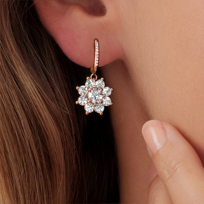 Was könnte umwerfender sein, als ein Paar atemberaubender Ohrhänger? Diese Roségold Camille 2 Ohrhänger sind ein echter Hingucker. Diese Cluster Ohrhänger sind mit rund Diamanten besetzt. Wir arbeiten mit den besten Lieferanten für Edelsteine und sie wählen unsere Edelsteine mit großer Sorgfalt aus. Ihre Ohrhänger werden von unseren erfahrenen Goldschmieden in unserem eigenen Atelier gefertigt. Was könnte schöner sein, als persönlich gestaltete, Luxus Ohrhänger, nur für Sie handgefertigt? Sie können gerne jedes Modell anpassen, indem Sie verschiedene Edelmetalle und Edelsteine wählen. Das macht Ihren Ohrhänger wirklich einzigartig. Diese Ohrhänger kann nach Ihren Wünschen angepasst werden. Selbstverständlich können Sie auch uns fragen. Gerne sind wir Ihnen bei der Gestaltung Ihren Luxus Ohrhänger behilflich. Wenn Sie immer noch spezielle Wünsche bezüglich der Anpassung Ihres Designs haben, wie zum Beispiel das Hinzufügen eines Edelsteins, der nicht in der Liste aufgeführt ist, können Sie uns gerne kontaktieren. Wir informieren Sie gerne über verschiedene Möglichkeiten.Durch die Kombination modernster Technik mit uralter Handwerkskunst können wir alle Ohrhänger in unserem eigenen Studio anfertigen. Jedes Schmuckstück wird auf Anfrage gefertigt. Das ist vorteilhaft, weil wir Ihnen dadurch einen Preis anbieten können, den Sie nirgendwo anders finden.Um es einfacher zu machen, bieten wir eine kostenlose 30-tägige Rücksendung.