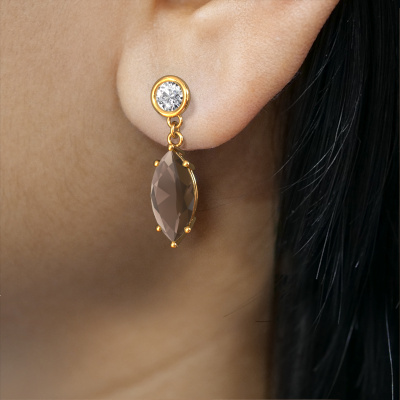 Was könnte umwerfender sein, als ein Paar atemberaubender Ohrhänger? Diese Gold Lacey MRQ Ohrhänger sind ein echter Hingucker. Diese preiswertige Ohrhänger sind mit marquise Rauchquarz besetzt. Wir arbeiten mit den besten Lieferanten für Edelsteine und sie wählen unsere Edelsteine mit großer Sorgfalt aus. Ihre Ohrhänger werden von unseren erfahrenen Goldschmieden in unserem eigenen Atelier gefertigt. Das Besondere an DiamondsByMe ist, dass Sie Ihren eigenen Lacey MRQ Ohrhänger entwerfen können. Die Fantasie wird Wirklichkeit! Sobald Sie mit dem Anpassen fertig sind, werden unsere Goldschmiede diese preiswertige Ohrhänger von Hand anfertigen. Machen Sie einen Traum wahr!Mit unserer modernen Technik können wir Schmuckstücke von höchster Qualität mit größter Sorgfalt für Sie entwerfen und anpassen. Unsere Ohrhänger sind immer um 30 Prozent günstiger als bei anderen Juwelieren. Wir fertigen Ohrhänger auf Bestellung, also müssen wir keine großen Lager unterhalten. Wenn Sie ein bestimmtes Budget haben, beraten wir Sie gerne entsprechend.Um es einfacher zu machen, bieten wir eine kostenlose 30-tägige Rücksendung.