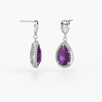 Mit einem Paar exklusiver Ohrhänger sticht jede Frau aus der Menge hervor. Bei DiamondsByMe kreieren wir exklusive und außergewöhnlichen Schmuck, und wir verwenden nur die besten Edelmetalle und Edelsteine. Diese exklusiven Platin Ohrhänger sind ein wahres Kunstwerk! Jedes kleine Detail wurde von unserem erfahrenen Juwelier mit Geduld und Leidenschaft gefertigt. Das erfordert ein scharfes Auge und eine geschickte Hand, damit der Ring sorgfältig zur Perfektion gebracht wird. Und genau darum bemühen sich unsere erfahrenen Goldschmiede- Perfektion! Die exquisiten Amethysten sind so gefasst, dass sie noch heller strahlen. Das verleiht den Tropf Ohrhänger einen zusätzlichen, glamourösen Look. Oben abgebildet sind unsere Platin Tilly per 1 Ohrhänger mit tropfen Amethysten. Die Tilly per 1 die Ohrringe werden von unserem Goldschmiedemeister in unserem eigenen Studio für Sie angefertigt.. Sobald Sie Ihren exklusive Ohrhänger mit unserem Online-Tool fertiggestellt haben, beginnen unsere Goldschmiede mit der kreativen Anfertigung Ihrer Ohrhänger. Dieser wird mit Leidenschaft und Sorgfalt nach alter Handwerkskunst gefertigt. Darüber hinaus sind unsere Edelsteine ehrlich gewonnen. Wenn Sie spezielle Änderungen an Ihren Tilly per 1 Ohrhänger vornehmen möchten, die in unserem Online-Tool nicht verfügbar sind, wenden Sie sich bitte an unsere Experten. Da wir unseren eigenen Schmuckstücken entwerfen und liefern, können wir Ihnen Ohrhänger zu einem Preis anbieten, den Sie nirgendwo anders finden. Ohrhänger werden auf Bestellung angefertigt, wodurch kein überschüssiges Material anfällt. So können wir Ihnen ein gutes Angebot zum besten Preis machen. Wir verstehen, dass es sich riskant anfühlt, Ihre Ohrhänger online zu kaufen. Jedoch helfen wir Ihnen gerne beim Designprozess unter Berücksichtigung Ihres Budgets. Um es einfacher zu machen, bieten wir eine kostenlose 30-tägige Rücksendung.