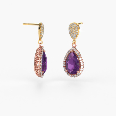 Mit einem Paar exklusiver Ohrhänger sticht jede Frau aus der Menge hervor. Bei DiamondsByMe kreieren wir exklusive und außergewöhnlichen Schmuck, und wir verwenden nur die besten Edelmetalle und Edelsteine. Diese exklusiven Roségold Ohrhänger sind ein wahres Kunstwerk! Jedes kleine Detail wurde von unserem erfahrenen Juwelier mit Geduld und Leidenschaft gefertigt. Das erfordert ein scharfes Auge und eine geschickte Hand, damit der Ring sorgfältig zur Perfektion gebracht wird. Und genau darum bemühen sich unsere erfahrenen Goldschmiede- Perfektion! Die exquisiten Amethysten sind so gefasst, dass sie noch heller strahlen. Das verleiht den besondere Ohrhänger einen zusätzlichen, glamourösen Look. Oben abgebildet sind unsere Roségold Tilly per 2 Ohrhänger mit tropfen Amethysten. Die Tilly per 2 Ohrringe werden von einem Team leidenschaftlicher Goldschmiede und Designer angefertigt. Das wird Ihr einzigartiges Kronjuwel wirklich zu einem Blickfang machen.. Unsere Goldschmiede kreieren Ihre individuelle Ohrhänger leidenschaftlich, mit größter Sorgfalt und nach Ihren Wünschen. Das Roségold Ohrhänger-Set, wie hier abgebildet, kann mit unserem Online-Tool individuell angepasst werden. Bitte fragen Sie unsere Schmuckdesigner um Hilfe, wenn Sie Änderungen wünschen, die in unserem Online-Tool nicht verfügbar sind. Gerne beantworten wir Ihnen alle offenen Fragen. Haben Sie ein bestimmtes Budget? Sie können uns gerne kontaktieren, damit wir Ihre Optionen besprechen können. Wir bieten unsere Ohrhänger zum garantiert besten Preis, denn wir fertigen sie auf Bestellung. Solche Preise finden Sie nirgendwo anders! Um es einfacher zu machen, bieten wir eine kostenlose 30-tägige Rücksendung.