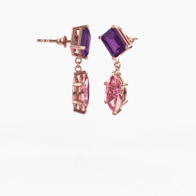 Mit einem Paar exklusiver Ohrhänger sticht jede Frau aus der Menge hervor. Bei DiamondsByMe kreieren wir modische und außergewöhnlichen Schmuck, und wir verwenden nur die besten Edelmetalle und Edelsteine. Diese exklusiven Roségold Ohrhänger sind ein wahres Kunstwerk! Jedes kleine Detail wurde von unserem erfahrenen Juwelier mit Geduld und Leidenschaft gefertigt. Das erfordert ein scharfes Auge und eine geschickte Hand, damit der Ring sorgfältig zur Perfektion gebracht wird. Und genau darum bemühen sich unsere erfahrenen Goldschmiede- Perfektion! Die exquisiten Amethysten sind so gefasst, dass sie noch heller strahlen. Das verleiht den besondere Ohrhänger einen zusätzlichen, glamourösen Look. Oben abgebildet sind unsere Roségold Toi et Moi EME MRQ Ohrhänger mit smaragd schliff Amethysten. Die Toi et Moi EME MRQ Ohrringe sind einzigartige Schmuckstücke, weil sie nach Ihren Wünschen angefertigt werden können.. Was könnte schöner sein, als persönlich gestaltete, modische Ohrhänger, nur für Sie handgefertigt? Sie können gerne jedes Modell anpassen, indem Sie verschiedene Edelmetalle und Edelsteine wählen. Das macht Ihren Ohrhänger wirklich einzigartig. Diese Ohrhänger kann nach Ihren Wünschen angepasst werden. Selbstverständlich können Sie auch uns fragen. Gerne sind wir Ihnen bei der Gestaltung Ihren modische Ohrhänger behilflich. Wenn Sie immer noch spezielle Wünsche bezüglich der Anpassung Ihres Designs haben, wie zum Beispiel das Hinzufügen eines Edelsteins, der nicht in der Liste aufgeführt ist, können Sie uns gerne kontaktieren. Wir informieren Sie gerne über verschiedene Möglichkeiten. Da wir unseren eigenen Schmuckstücken entwerfen und liefern, können wir Ihnen Ohrhänger zu einem Preis anbieten, den Sie nirgendwo anders finden. Ohrhänger werden auf Bestellung angefertigt, wodurch kein überschüssiges Material anfällt. So können wir Ihnen ein gutes Angebot zum besten Preis machen. Wir verstehen, dass es sich riskant anfühlt, Ihre Ohrhänger online zu kaufen. Jedoch helfen wir Ihnen gerne beim Designprozess unter Berücksichtigung Ihres Budgets. Um es einfacher zu machen, bieten wir eine kostenlose 30-tägige Rücksendung.