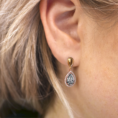 Mit einem Paar exklusiver Ohrhänger sticht jede Frau aus der Menge hervor. Bei DiamondsByMe kreieren wir exklusive und außergewöhnlichen Schmuck, und wir verwenden nur die besten Edelmetalle und Edelsteine. Diese exklusiven Roségold Ohrhänger sind ein wahres Kunstwerk! Jedes kleine Detail wurde von unserem erfahrenen Juwelier mit Geduld und Leidenschaft gefertigt. Das erfordert ein scharfes Auge und eine geschickte Hand, damit der Ring sorgfältig zur Perfektion gebracht wird. Und genau darum bemühen sich unsere erfahrenen Goldschmiede- Perfektion! Die exquisiten Diamanten sind so gefasst, dass sie noch heller strahlen. Das verleiht den Tropf Ohrhänger einen zusätzlichen, glamourösen Look. Oben abgebildet sind unsere Roségold Tilly per 1 Ohrhänger mit tropfen Diamanten. Die Tilly per 1 die Ohrringe werden von unserem Goldschmiedemeister in unserem eigenen Studio für Sie angefertigt.. Sobald Sie Ihren exklusive Ohrhänger mit unserem Online-Tool fertiggestellt haben, beginnen unsere Goldschmiede mit der kreativen Anfertigung Ihrer Ohrhänger. Dieser wird mit Leidenschaft und Sorgfalt nach alter Handwerkskunst gefertigt. Darüber hinaus sind unsere Edelsteine ehrlich gewonnen. Wenn Sie spezielle Änderungen an Ihren Tilly per 1 Ohrhänger vornehmen möchten, die in unserem Online-Tool nicht verfügbar sind, wenden Sie sich bitte an unsere Experten. Da wir unseren eigenen Schmuckstücken entwerfen und liefern, können wir Ihnen Ohrhänger zu einem Preis anbieten, den Sie nirgendwo anders finden. Ohrhänger werden auf Bestellung angefertigt, wodurch kein überschüssiges Material anfällt. So können wir Ihnen ein gutes Angebot zum besten Preis machen. Wir verstehen, dass es sich riskant anfühlt, Ihre Ohrhänger online zu kaufen. Jedoch helfen wir Ihnen gerne beim Designprozess unter Berücksichtigung Ihres Budgets. Um es einfacher zu machen, bieten wir eine kostenlose 30-tägige Rücksendung.