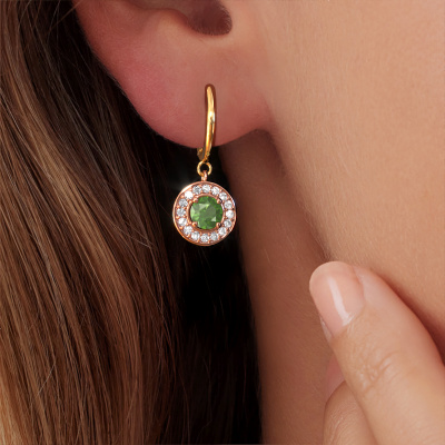 Mit einem Paar exklusiver Ohrhänger sticht jede Frau aus der Menge hervor. Bei DiamondsByMe kreieren wir design und außergewöhnlichen Schmuck, und wir verwenden nur die besten Edelmetalle und Edelsteine. Diese exklusiven Roségold Ohrhänger sind ein wahres Kunstwerk! Jedes kleine Detail wurde von unserem erfahrenen Juwelier mit Geduld und Leidenschaft gefertigt. Das erfordert ein scharfes Auge und eine geschickte Hand, damit der Ring sorgfältig zur Perfektion gebracht wird. Und genau darum bemühen sich unsere erfahrenen Goldschmiede- Perfektion! Die exquisiten grüner Turmalin sind so gefasst, dass sie noch heller strahlen. Das verleiht den Halo Ohrhänger einen zusätzlichen, glamourösen Look. Oben abgebildet sind unsere Roségold Ninette 1 Ohrhänger mit rund grüner Turmalin. Die Ninette 1 die Ohrringe werden von unserem Goldschmiedemeister in unserem eigenen Studio für Sie angefertigt.. Unsere Goldschmiede kreieren Ihre individuelle Ohrhänger leidenschaftlich, mit größter Sorgfalt und nach Ihren Wünschen. Das Roségold Ohrhänger-Set, wie hier abgebildet, kann mit unserem Online-Tool individuell angepasst werden. Bitte fragen Sie unsere Schmuckdesigner um Hilfe, wenn Sie Änderungen wünschen, die in unserem Online-Tool nicht verfügbar sind. Gerne beantworten wir Ihnen alle offenen Fragen. Nachdem Sie Ihre Bestellung aufgegeben haben, beginnen unsere Goldschmiede mit dem kreativen Prozess der Herstellung Ihres Ninette 1 Ohrhänger. Wir haben keine Lager. Das ist vorteilhaft, da diese Kosten nicht an Sie weitergegeben werden. Daher sind wir in der Lage, Schmuck zu außergewöhnlich niedrigen Preisen anzubieten. Um es einfacher zu machen, bieten wir eine kostenlose 30-tägige Rücksendung.