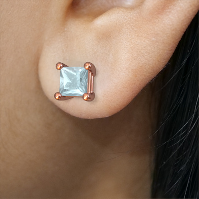 Solitär Ohrsteckers sind klassische und doch modische Schmuckstücke. Bei Solitär Ohrsteckers sind die Krappen offen und es wird nur ein Stein gesetzt, der das Licht aus jedem Blickwinkel reflektiert. Weil der Aquamarin höher positioniert ist, werden diese moderne Ohrsteckers zu einem wahren Blickfang. Wir fertigen jedes Detail dieser Solitär Ohrsteckers sorgfältig von Hand. Unsere erfahrenen Goldschmiede setzen die Aquamarins mit höchster Präzision in diese Roségold Ohrsteckers, so dass Licht von allen Seiten gleichmäßig reflektiert wird. Die Ohrsteckers sind mit 4 mm princess Aquamarins besetzt. Die Sam square Ohrringe werden gemacht, um Ihre Ohren zu verschönern. Jedes Schmuckstück wird von unseren Goldschmieden liebevoll von Hand gefertigt.. Unsere Goldschmiede kreieren Ihre individuelle Ohrsteckers leidenschaftlich, mit größter Sorgfalt und nach Ihren Wünschen. Das Roségold Ohrsteckers-Set, wie hier abgebildet, kann mit unserem Online-Tool individuell angepasst werden. Bitte fragen Sie unsere Schmuckdesigner um Hilfe, wenn Sie Änderungen wünschen, die in unserem Online-Tool nicht verfügbar sind. Gerne beantworten wir Ihnen alle offenen Fragen. Durch die Kombination modernster Technik mit uralter Handwerkskunst können wir alle Ohrsteckers in unserem eigenen Studio anfertigen. Jedes Schmuckstück wird auf Anfrage gefertigt. Das ist vorteilhaft, weil wir Ihnen dadurch einen Preis anbieten können, den Sie nirgendwo anders finden. Um es einfacher zu machen, bieten wir eine kostenlose 30-tägige Rücksendung.