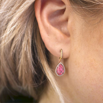 Wenn Sie nach exklusive und persönlichen Ohrhänger suchen, dann werden Ihnen diese perfekt passen. Sie haben die Möglichkeit, diesen Ohrhängern Ihre Geburtssteine hinzuzufügen. Jeder Monat hat seinen eigenen Geburtsstein. Sie können Ihren eigenen Geburtsstein oder den Ihrer Kinder verwenden. Ein unbezahlbares Geschenk, auch wenn es für Sie selbst ist. Unser erfahrener Juwelier wird die ausgewählten Steine mit äußerster Präzision in Ihre Ohrhänger setzen, so dass das Licht aus allen Blickwinkeln gleichmäßig reflektiert wird. Hier wurden 12x8 mm tropfen Pink Saphir verwendet, um diese Roségold Tröpfe Tilly per 4 Ohrhänger zu schmücken. Die Tilly per 4 Ohrringe werden von einem unserer Goldschmiedemeister mit Leidenschaft gefertigt..