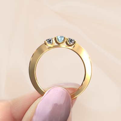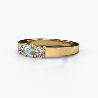 Dieser 3 Stone Ring wird Selina 1 genannt. Diese Art von Ring wird als Memoire ring bezeichnet, da seine Edelsteine in einer durchgehenden Linie angeordnet sind. Dadurch kann er einfach mit anderen Ringen kombiniert werden. Das Band dieses 14 Karat Gold Ring ist in einer Kombination aus Aquamarin und Diamant besetzt. Sie können ganz einfach online die Kombination auswählen, die Sie bevorzugen. Wie Sie sehen, wird bei diesem Gold Memoire Ring mehre Aquamarins gesetzt. Der Memoire ring steht für Zusammenwirken. Und genau das tun diese Edelsteine, zusammenwirken. Zusammen geben sie dem Band eines moderne Ring einen schönen Effekt! So ein bedeutungsvoller Ring, finden Sie nicht auch? Alle von uns ausgesuchten Aquamarins werden von unserem erfahrenen Goldschiede in Handarbeit eingefasst. Das ist eine präzise Aufgabe, die nur durch die Kombination von purer Handwerkskunst und dem Einsatz neuester Techniken erfolgreich durchgeführt werden kann, um eine optimale Wirkung zu erzielen. Um eine perfekte Lichtreflexion zu erzeugen, müssen alle Edelsteine auf die gleiche Weise perfekt ausgerichtet sein. Während der Fertigung wird der Goldschmied Meister daher ständig die Lichtreflexion überwachen, um zu gewährleisten, dass die Aquamarins perfekt ausgerichtet sind. Das erfordert eine geschickte Hand und viel Geduld, aber dann wird das Endprodukt zu einem echten Kunstwerk. Und genau das ist unsere Mission!Mit unserer modernen Technik können wir Schmuckstücke von höchster Qualität mit größter Sorgfalt für Sie entwerfen und anpassen. Unsere Ringe sind immer um 30 Prozent günstiger als bei anderen Juwelieren. Wir fertigen Ringe auf Bestellung, also müssen wir keine großen Lager unterhalten. Wenn Sie ein bestimmtes Budget haben, beraten wir Sie gerne entsprechend.Unsere Online-Kollektion wird täglich um neue Schmuckdesigns ergänzt. Unser Team von leidenschaftlichen Designern ist bemüht, außergewöhnliche und vielfältige Designs zu kreieren. Haben Sie einen Ring gesehen, der Ihnen gefällt? Setzen Sie sich mit uns in Verbindung. Basierend auf einem guten Preis/Leistungsverhältnis machen wir Ihnen ein Angebot, das Sie nicht ablehnen können!Um es einfacher zu machen, bieten wir eine kostenlose 30-tägige Rücksendung.