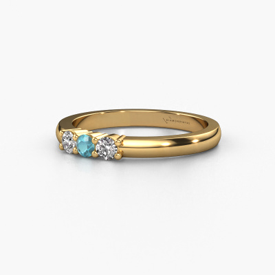 Dieser 3 Stone Ring wird Yasmin 3 genannt. Diese Art von Ring wird als Memoire ring bezeichnet, da seine Edelsteine in einer durchgehenden Linie angeordnet sind. Dadurch kann er einfach mit anderen Ringen kombiniert werden. Das Band dieses 14 Karat Gold Ring ist in einer Kombination aus Blau Topas und Lab-grown Diamant besetzt. Sie können ganz einfach online die Kombination auswählen, die Sie bevorzugen. Wie Sie sehen, wird bei diesem Gold Memoire Ring mehre Blaue Topas gesetzt. Der Memoire ring steht für Zusammenwirken. Und genau das tun diese Edelsteine, zusammenwirken. Zusammen geben sie dem Band eines klassische Ring einen schönen Effekt! So ein bedeutungsvoller Ring, finden Sie nicht auch? Alle von uns ausgesuchten Blaue Topas werden von unserem erfahrenen Goldschiede in Handarbeit eingefasst. Das ist eine präzise Aufgabe, die nur durch die Kombination von purer Handwerkskunst und dem Einsatz neuester Techniken erfolgreich durchgeführt werden kann, um eine optimale Wirkung zu erzielen. Um eine perfekte Lichtreflexion zu erzeugen, müssen alle Edelsteine auf die gleiche Weise perfekt ausgerichtet sein. Während der Fertigung wird der Goldschmied Meister daher ständig die Lichtreflexion überwachen, um zu gewährleisten, dass die Blaue Topas perfekt ausgerichtet sind. Das erfordert eine geschickte Hand und viel Geduld, aber dann wird das Endprodukt zu einem echten Kunstwerk. Und genau das ist unsere Mission!Durch die Kombination modernster Technik mit uralter Handwerkskunst können wir alle Ringe in unserem eigenen Studio anfertigen. Jedes Schmuckstück wird auf Anfrage gefertigt. Das ist vorteilhaft, weil wir Ihnen dadurch einen Preis anbieten können, den Sie nirgendwo anders finden.Unsere talentierten, leidenschaftlichen Designer fügen unserer Online-Kollektion täglich neue Designs hinzu. Zusammen versuchen sie, eine vielfältige Kollektion feinster Schmuckstücke zu erstellen. Wenn Sie es vorziehen, einen Ring nach Ihrem eigenen Entwurf zu machen, können Sie gerne ein Angebot anfordern. Wir machen Ihnen ein großartiges Angebot, basierend auf Qualität und Preis.Um es einfacher zu machen, bieten wir eine kostenlose 30-tägige Rücksendung.