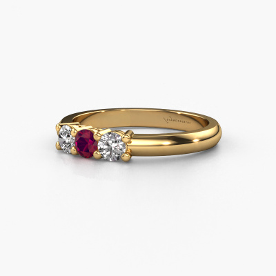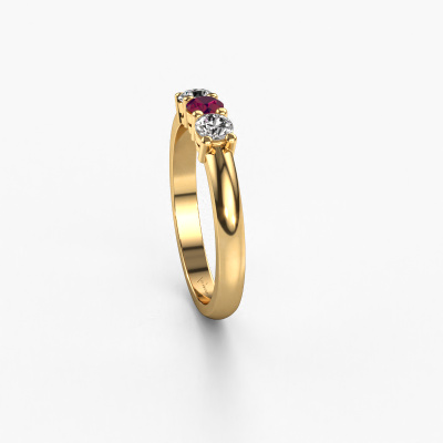 Dieser 3 Stone Ring wird Michelle 3 genannt. Diese Art von Ring wird als Memoire ring bezeichnet, da seine Edelsteine in einer durchgehenden Linie angeordnet sind. Dadurch kann er einfach mit anderen Ringen kombiniert werden. Das Band dieses 14 Karat Gold Ring ist in einer Kombination aus Rhodolit und Lab-grown Diamant besetzt. Sie können ganz einfach online die Kombination auswählen, die Sie bevorzugen. Wie Sie sehen, wird bei diesem Gold Memoire Ring mehre Rhodolit gesetzt. Der Memoire ring steht für Zusammenwirken. Und genau das tun diese Edelsteine, zusammenwirken. Zusammen geben sie dem Band eines klassische Ring einen schönen Effekt! So ein bedeutungsvoller Ring, finden Sie nicht auch? Alle von uns ausgesuchten Rhodolit werden von unserem erfahrenen Goldschiede in Handarbeit eingefasst. Das ist eine präzise Aufgabe, die nur durch die Kombination von purer Handwerkskunst und dem Einsatz neuester Techniken erfolgreich durchgeführt werden kann, um eine optimale Wirkung zu erzielen. Um eine perfekte Lichtreflexion zu erzeugen, müssen alle Edelsteine auf die gleiche Weise perfekt ausgerichtet sein. Während der Fertigung wird der Goldschmied Meister daher ständig die Lichtreflexion überwachen, um zu gewährleisten, dass die Rhodolit perfekt ausgerichtet sind. Das erfordert eine geschickte Hand und viel Geduld, aber dann wird das Endprodukt zu einem echten Kunstwerk. Und genau das ist unsere Mission!Haben Sie ein bestimmtes Budget? Sie können uns gerne kontaktieren, damit wir Ihre Optionen besprechen können. Wir bieten unsere Ringe zum garantiert besten Preis, denn wir fertigen sie auf Bestellung. Solche Preise finden Sie nirgendwo anders!