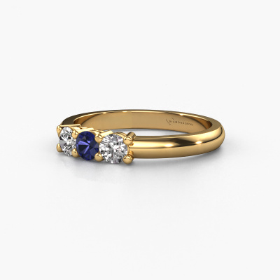 Dieser 3 Stone Ring wird Michelle 3 genannt. Diese Art von Ring wird als Memoire ring bezeichnet, da seine Edelsteine in einer durchgehenden Linie angeordnet sind. Dadurch kann er einfach mit anderen Ringen kombiniert werden. Das Band dieses 14 Karat Gold Ring ist in einer Kombination aus Saphir und Lab-grown Diamant besetzt. Sie können ganz einfach online die Kombination auswählen, die Sie bevorzugen. Wie Sie sehen, wird bei diesem Gold Memoire Ring mehre Saphir gesetzt. Der Memoire ring steht für Zusammenwirken. Und genau das tun diese Edelsteine, zusammenwirken. Zusammen geben sie dem Band eines klassische Ring einen schönen Effekt! So ein bedeutungsvoller Ring, finden Sie nicht auch? Alle von uns ausgesuchten Saphir werden von unserem erfahrenen Goldschiede in Handarbeit eingefasst. Das ist eine präzise Aufgabe, die nur durch die Kombination von purer Handwerkskunst und dem Einsatz neuester Techniken erfolgreich durchgeführt werden kann, um eine optimale Wirkung zu erzielen. Um eine perfekte Lichtreflexion zu erzeugen, müssen alle Edelsteine auf die gleiche Weise perfekt ausgerichtet sein. Während der Fertigung wird der Goldschmied Meister daher ständig die Lichtreflexion überwachen, um zu gewährleisten, dass die Saphir perfekt ausgerichtet sind. Das erfordert eine geschickte Hand und viel Geduld, aber dann wird das Endprodukt zu einem echten Kunstwerk. Und genau das ist unsere Mission!Haben Sie ein bestimmtes Budget? Sie können uns gerne kontaktieren, damit wir Ihre Optionen besprechen können. Wir bieten unsere Ringe zum garantiert besten Preis, denn wir fertigen sie auf Bestellung. Solche Preise finden Sie nirgendwo anders!