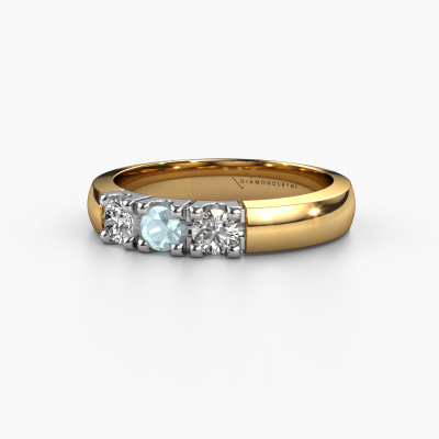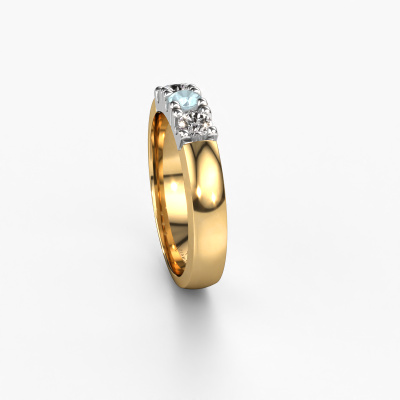 Dieser 3 Stone Ring wird Rianne 3 genannt. Diese Art von Ring wird als Memoire ring bezeichnet, da seine Edelsteine in einer durchgehenden Linie angeordnet sind. Dadurch kann er einfach mit anderen Ringen kombiniert werden. Das Band dieses 14 Karat Gold Ring ist in einer Kombination aus Aquamarin und Diamant besetzt. Sie können ganz einfach online die Kombination auswählen, die Sie bevorzugen. Wie Sie sehen, wird bei diesem Gold Memoire Ring mehre Aquamarins gesetzt. Der Memoire ring steht für Zusammenwirken. Und genau das tun diese Edelsteine, zusammenwirken. Zusammen geben sie dem Band eines klassische Ring einen schönen Effekt! So ein bedeutungsvoller Ring, finden Sie nicht auch? Alle von uns ausgesuchten Aquamarins werden von unserem erfahrenen Goldschiede in Handarbeit eingefasst. Das ist eine präzise Aufgabe, die nur durch die Kombination von purer Handwerkskunst und dem Einsatz neuester Techniken erfolgreich durchgeführt werden kann, um eine optimale Wirkung zu erzielen. Um eine perfekte Lichtreflexion zu erzeugen, müssen alle Edelsteine auf die gleiche Weise perfekt ausgerichtet sein. Während der Fertigung wird der Goldschmied Meister daher ständig die Lichtreflexion überwachen, um zu gewährleisten, dass die Aquamarins perfekt ausgerichtet sind. Das erfordert eine geschickte Hand und viel Geduld, aber dann wird das Endprodukt zu einem echten Kunstwerk. Und genau das ist unsere Mission!Nach Erhalt Ihrer Bestellung beginnen unsere Goldschmiede mit Leidenschaft den kreativen Prozess und fertigen Ihren Ring in unserem eigenen Studio. Da wir keine großen Lager haben, werden diese Kosten nicht an Sie weitergegeben. Unsere Preisgestaltung ist der Beweis dafür! Wir bieten Schmuck zum niedrigsten Preis, garantiert.Unser Team von talentierten, leidenschaftlichen Designern fügt unserer Online-Kollektion täglich neue Ringe-Designs hinzu. Unser Ziel dabei ist es, Ihnen eine große Vielfalt an Schmuckstücken anbieten zu können. Bitte zögern Sie nicht, ein Angebot anzufordern, wenn Sie spezielle Wünsche für Ihren Ring haben. Wir garantieren Ihnen ein Angebot, das Sie nicht ablehnen können.Um es einfacher zu machen, bieten wir eine kostenlose 30-tägige Rücksendung.