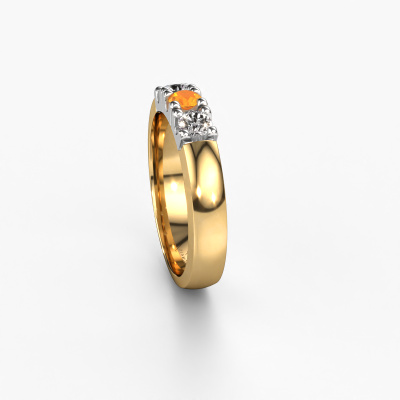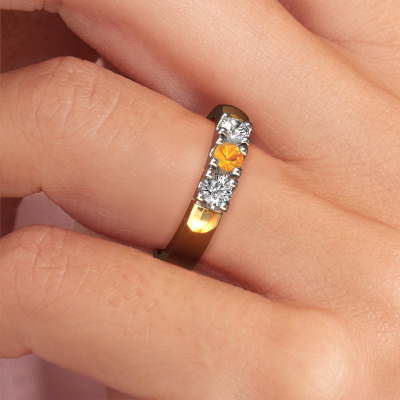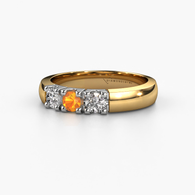 Dieser 3 Stone Ring wird Rianne 3 genannt. Diese Art von Ring wird als Memoire ring bezeichnet, da seine Edelsteine in einer durchgehenden Linie angeordnet sind. Dadurch kann er einfach mit anderen Ringen kombiniert werden. Das Band dieses 14 Karat Gold Ring ist in einer Kombination aus Citrin und Diamant besetzt. Sie können ganz einfach online die Kombination auswählen, die Sie bevorzugen. Wie Sie sehen, wird bei diesem Gold Memoire Ring mehre Citrin gesetzt. Der Memoire ring steht für Zusammenwirken. Und genau das tun diese Edelsteine, zusammenwirken. Zusammen geben sie dem Band eines klassische Ring einen schönen Effekt! So ein bedeutungsvoller Ring, finden Sie nicht auch? Alle von uns ausgesuchten Citrin werden von unserem erfahrenen Goldschiede in Handarbeit eingefasst. Das ist eine präzise Aufgabe, die nur durch die Kombination von purer Handwerkskunst und dem Einsatz neuester Techniken erfolgreich durchgeführt werden kann, um eine optimale Wirkung zu erzielen. Um eine perfekte Lichtreflexion zu erzeugen, müssen alle Edelsteine auf die gleiche Weise perfekt ausgerichtet sein. Während der Fertigung wird der Goldschmied Meister daher ständig die Lichtreflexion überwachen, um zu gewährleisten, dass die Citrin perfekt ausgerichtet sind. Das erfordert eine geschickte Hand und viel Geduld, aber dann wird das Endprodukt zu einem echten Kunstwerk. Und genau das ist unsere Mission!Nach Erhalt Ihrer Bestellung beginnen unsere Goldschmiede mit Leidenschaft den kreativen Prozess und fertigen Ihren Ring in unserem eigenen Studio. Da wir keine großen Lager haben, werden diese Kosten nicht an Sie weitergegeben. Unsere Preisgestaltung ist der Beweis dafür! Wir bieten Schmuck zum niedrigsten Preis, garantiert.Unser Team von talentierten, leidenschaftlichen Designern fügt unserer Online-Kollektion täglich neue Ringe-Designs hinzu. Unser Ziel dabei ist es, Ihnen eine große Vielfalt an Schmuckstücken anbieten zu können. Bitte zögern Sie nicht, ein Angebot anzufordern, wenn Sie spezielle Wünsche für Ihren Ring haben. Wir garantieren Ihnen ein Angebot, das Sie nicht ablehnen können.Um es einfacher zu machen, bieten wir eine kostenlose 30-tägige Rücksendung.
