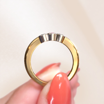 Dieser 3 Stone Ring wird Lotte 3 genannt. Diese Art von Ring wird als Memoire ring bezeichnet, da seine Edelsteine in einer durchgehenden Linie angeordnet sind. Dadurch kann er einfach mit anderen Ringen kombiniert werden. Das Band dieses 14 Karat Gold Ring ist in einer Kombination aus Pink Saphir und Diamant besetzt. Sie können ganz einfach online die Kombination auswählen, die Sie bevorzugen. Wie Sie sehen, wird bei diesem Gold Memoire Ring mehre Pink Saphir gesetzt. Der Memoire ring steht für Zusammenwirken. Und genau das tun diese Edelsteine, zusammenwirken. Zusammen geben sie dem Band eines moderne Ring einen schönen Effekt! So ein bedeutungsvoller Ring, finden Sie nicht auch? Alle von uns ausgesuchten Pink Saphir werden von unserem erfahrenen Goldschiede in Handarbeit eingefasst. Das ist eine präzise Aufgabe, die nur durch die Kombination von purer Handwerkskunst und dem Einsatz neuester Techniken erfolgreich durchgeführt werden kann, um eine optimale Wirkung zu erzielen. Um eine perfekte Lichtreflexion zu erzeugen, müssen alle Edelsteine auf die gleiche Weise perfekt ausgerichtet sein. Während der Fertigung wird der Goldschmied Meister daher ständig die Lichtreflexion überwachen, um zu gewährleisten, dass die Pink Saphir perfekt ausgerichtet sind. Das erfordert eine geschickte Hand und viel Geduld, aber dann wird das Endprodukt zu einem echten Kunstwerk. Und genau das ist unsere Mission!Durch die Kombination modernster Technik mit uralter Handwerkskunst können wir alle Ringe in unserem eigenen Studio anfertigen. Jedes Schmuckstück wird auf Anfrage gefertigt. Das ist vorteilhaft, weil wir Ihnen dadurch einen Preis anbieten können, den Sie nirgendwo anders finden.Unser Team von talentierten, leidenschaftlichen Designern fügt unserer Online-Kollektion täglich neue Ring-Designs hinzu. Unser Ziel dabei ist es, Ihnen eine große Vielfalt an Schmuckstücken anbieten zu können. Bitte zögern Sie nicht, ein Angebot anzufordern, wenn Sie spezielle Wünsche für Ihren Ring haben. Wir garantieren Ihnen ein Angebot, das Sie nicht ablehnen können.Um es einfacher zu machen, bieten wir eine kostenlose 30-tägige Rücksendung.