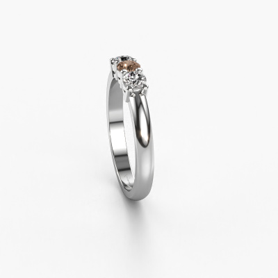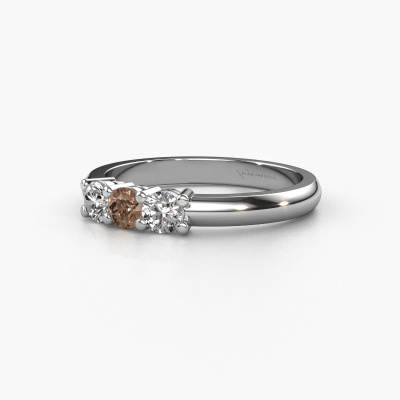 Dieser 3 Stone Ring wird Michelle 3 genannt. Diese Art von Ring wird als Memoire ring bezeichnet, da seine Edelsteine in einer durchgehenden Linie angeordnet sind. Dadurch kann er einfach mit anderen Ringen kombiniert werden. Das Band dieses Platin Ring ist in einer Kombination aus Braun Diamant und Lab-grown Diamant besetzt. Sie können ganz einfach online die Kombination auswählen, die Sie bevorzugen. Wie Sie sehen, wird bei diesem Platin Memoire Ring mehre Braune Diamanten gesetzt. Der Memoire ring steht für Zusammenwirken. Und genau das tun diese Edelsteine, zusammenwirken. Zusammen geben sie dem Band eines klassische Ring einen schönen Effekt! So ein bedeutungsvoller Ring, finden Sie nicht auch? Alle von uns ausgesuchten Braune Diamanten werden von unserem erfahrenen Goldschiede in Handarbeit eingefasst. Das ist eine präzise Aufgabe, die nur durch die Kombination von purer Handwerkskunst und dem Einsatz neuester Techniken erfolgreich durchgeführt werden kann, um eine optimale Wirkung zu erzielen. Um eine perfekte Lichtreflexion zu erzeugen, müssen alle Edelsteine auf die gleiche Weise perfekt ausgerichtet sein. Während der Fertigung wird der Goldschmied Meister daher ständig die Lichtreflexion überwachen, um zu gewährleisten, dass die Braune Diamanten perfekt ausgerichtet sind. Das erfordert eine geschickte Hand und viel Geduld, aber dann wird das Endprodukt zu einem echten Kunstwerk. Und genau das ist unsere Mission!Haben Sie ein bestimmtes Budget? Sie können uns gerne kontaktieren, damit wir Ihre Optionen besprechen können. Wir bieten unsere Ringe zum garantiert besten Preis, denn wir fertigen sie auf Bestellung. Solche Preise finden Sie nirgendwo anders!
