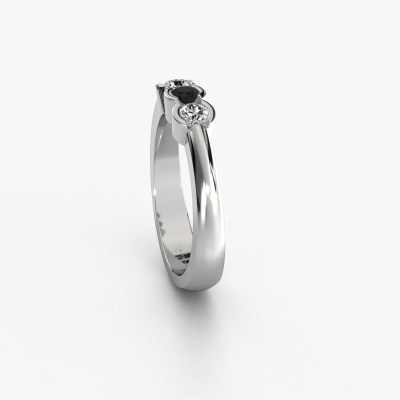 Dieser 3 Stone Ring wird Lotte 3 genannt. Diese Art von Ring wird als Memoire ring bezeichnet, da seine Edelsteine in einer durchgehenden Linie angeordnet sind. Dadurch kann er einfach mit anderen Ringen kombiniert werden. Das Band dieses Platin Ring ist in einer Kombination aus Schwarz Diamant und Diamant besetzt. Sie können ganz einfach online die Kombination auswählen, die Sie bevorzugen. Wie Sie sehen, wird bei diesem Platin Memoire Ring mehre Schwarze Diamanten gesetzt. Der Memoire ring steht für Zusammenwirken. Und genau das tun diese Edelsteine, zusammenwirken. Zusammen geben sie dem Band eines moderne Ring einen schönen Effekt! So ein bedeutungsvoller Ring, finden Sie nicht auch? Alle von uns ausgesuchten Schwarze Diamanten werden von unserem erfahrenen Goldschiede in Handarbeit eingefasst. Das ist eine präzise Aufgabe, die nur durch die Kombination von purer Handwerkskunst und dem Einsatz neuester Techniken erfolgreich durchgeführt werden kann, um eine optimale Wirkung zu erzielen. Um eine perfekte Lichtreflexion zu erzeugen, müssen alle Edelsteine auf die gleiche Weise perfekt ausgerichtet sein. Während der Fertigung wird der Goldschmied Meister daher ständig die Lichtreflexion überwachen, um zu gewährleisten, dass die Schwarze Diamanten perfekt ausgerichtet sind. Das erfordert eine geschickte Hand und viel Geduld, aber dann wird das Endprodukt zu einem echten Kunstwerk. Und genau das ist unsere Mission!Durch die Kombination modernster Technik mit uralter Handwerkskunst können wir alle Ringe in unserem eigenen Studio anfertigen. Jedes Schmuckstück wird auf Anfrage gefertigt. Das ist vorteilhaft, weil wir Ihnen dadurch einen Preis anbieten können, den Sie nirgendwo anders finden.Unser Team von talentierten, leidenschaftlichen Designern fügt unserer Online-Kollektion täglich neue Ring-Designs hinzu. Unser Ziel dabei ist es, Ihnen eine große Vielfalt an Schmuckstücken anbieten zu können. Bitte zögern Sie nicht, ein Angebot anzufordern, wenn Sie spezielle Wünsche für Ihren Ring haben. Wir garantieren Ihnen ein Angebot, das Sie nicht ablehnen können.Um es einfacher zu machen, bieten wir eine kostenlose 30-tägige Rücksendung.
