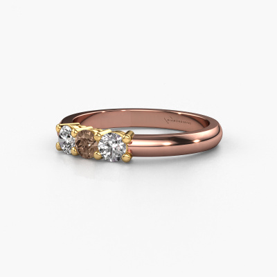 Dieser 3 Stone Ring wird Michelle 3 genannt. Diese Art von Ring wird als Memoire ring bezeichnet, da seine Edelsteine in einer durchgehenden Linie angeordnet sind. Dadurch kann er einfach mit anderen Ringen kombiniert werden. Das Band dieses 14 Karat Roségold Ring ist in einer Kombination aus Braun Diamant und Lab-grown Diamant besetzt. Sie können ganz einfach online die Kombination auswählen, die Sie bevorzugen. Wie Sie sehen, wird bei diesem Roségold Memoire Ring mehre Braune Diamanten gesetzt. Der Memoire ring steht für Zusammenwirken. Und genau das tun diese Edelsteine, zusammenwirken. Zusammen geben sie dem Band eines klassische Ring einen schönen Effekt! So ein bedeutungsvoller Ring, finden Sie nicht auch? Alle von uns ausgesuchten Braune Diamanten werden von unserem erfahrenen Goldschiede in Handarbeit eingefasst. Das ist eine präzise Aufgabe, die nur durch die Kombination von purer Handwerkskunst und dem Einsatz neuester Techniken erfolgreich durchgeführt werden kann, um eine optimale Wirkung zu erzielen. Um eine perfekte Lichtreflexion zu erzeugen, müssen alle Edelsteine auf die gleiche Weise perfekt ausgerichtet sein. Während der Fertigung wird der Goldschmied Meister daher ständig die Lichtreflexion überwachen, um zu gewährleisten, dass die Braune Diamanten perfekt ausgerichtet sind. Das erfordert eine geschickte Hand und viel Geduld, aber dann wird das Endprodukt zu einem echten Kunstwerk. Und genau das ist unsere Mission!Haben Sie ein bestimmtes Budget? Sie können uns gerne kontaktieren, damit wir Ihre Optionen besprechen können. Wir bieten unsere Ringe zum garantiert besten Preis, denn wir fertigen sie auf Bestellung. Solche Preise finden Sie nirgendwo anders!