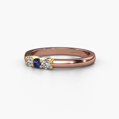Dieser 3 Stone Ring wird Yasmin 3 genannt. Diese Art von Ring wird als Memoire ring bezeichnet, da seine Edelsteine in einer durchgehenden Linie angeordnet sind. Dadurch kann er einfach mit anderen Ringen kombiniert werden. Das Band dieses 14 Karat Roségold Ring ist in einer Kombination aus Saphir und Lab-grown Diamant besetzt. Sie können ganz einfach online die Kombination auswählen, die Sie bevorzugen. Wie Sie sehen, wird bei diesem Roségold Memoire Ring mehre Saphir gesetzt. Der Memoire ring steht für Zusammenwirken. Und genau das tun diese Edelsteine, zusammenwirken. Zusammen geben sie dem Band eines klassische Ring einen schönen Effekt! So ein bedeutungsvoller Ring, finden Sie nicht auch? Alle von uns ausgesuchten Saphir werden von unserem erfahrenen Goldschiede in Handarbeit eingefasst. Das ist eine präzise Aufgabe, die nur durch die Kombination von purer Handwerkskunst und dem Einsatz neuester Techniken erfolgreich durchgeführt werden kann, um eine optimale Wirkung zu erzielen. Um eine perfekte Lichtreflexion zu erzeugen, müssen alle Edelsteine auf die gleiche Weise perfekt ausgerichtet sein. Während der Fertigung wird der Goldschmied Meister daher ständig die Lichtreflexion überwachen, um zu gewährleisten, dass die Saphir perfekt ausgerichtet sind. Das erfordert eine geschickte Hand und viel Geduld, aber dann wird das Endprodukt zu einem echten Kunstwerk. Und genau das ist unsere Mission!Durch die Kombination modernster Technik mit uralter Handwerkskunst können wir alle Ringe in unserem eigenen Studio anfertigen. Jedes Schmuckstück wird auf Anfrage gefertigt. Das ist vorteilhaft, weil wir Ihnen dadurch einen Preis anbieten können, den Sie nirgendwo anders finden.Unsere talentierten, leidenschaftlichen Designer fügen unserer Online-Kollektion täglich neue Designs hinzu. Zusammen versuchen sie, eine vielfältige Kollektion feinster Schmuckstücke zu erstellen. Wenn Sie es vorziehen, einen Ring nach Ihrem eigenen Entwurf zu machen, können Sie gerne ein Angebot anfordern. Wir machen Ihnen ein großartiges Angebot, basierend auf Qualität und Preis.Um es einfacher zu machen, bieten wir eine kostenlose 30-tägige Rücksendung.