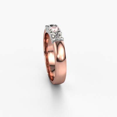 Dieser 3 Stone Ring wird Rianne 3 genannt. Diese Art von Ring wird als Memoire ring bezeichnet, da seine Edelsteine in einer durchgehenden Linie angeordnet sind. Dadurch kann er einfach mit anderen Ringen kombiniert werden. Das Band dieses 14 Karat Roségold Ring ist in einer Kombination aus Morganit Champagner und Diamant besetzt. Sie können ganz einfach online die Kombination auswählen, die Sie bevorzugen. Wie Sie sehen, wird bei diesem Roségold Memoire Ring mehre Morganit Champagner gesetzt. Der Memoire ring steht für Zusammenwirken. Und genau das tun diese Edelsteine, zusammenwirken. Zusammen geben sie dem Band eines klassische Ring einen schönen Effekt! So ein bedeutungsvoller Ring, finden Sie nicht auch? Alle von uns ausgesuchten Morganit Champagner werden von unserem erfahrenen Goldschiede in Handarbeit eingefasst. Das ist eine präzise Aufgabe, die nur durch die Kombination von purer Handwerkskunst und dem Einsatz neuester Techniken erfolgreich durchgeführt werden kann, um eine optimale Wirkung zu erzielen. Um eine perfekte Lichtreflexion zu erzeugen, müssen alle Edelsteine auf die gleiche Weise perfekt ausgerichtet sein. Während der Fertigung wird der Goldschmied Meister daher ständig die Lichtreflexion überwachen, um zu gewährleisten, dass die Morganit Champagner perfekt ausgerichtet sind. Das erfordert eine geschickte Hand und viel Geduld, aber dann wird das Endprodukt zu einem echten Kunstwerk. Und genau das ist unsere Mission!