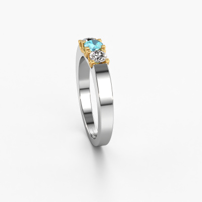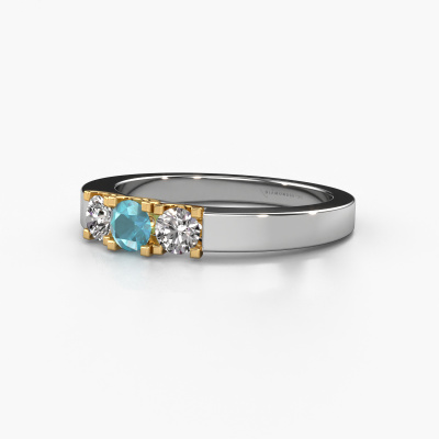 Dieser 3 Stone Ring wird Selina 1 genannt. Diese Art von Ring wird als Memoire ring bezeichnet, da seine Edelsteine in einer durchgehenden Linie angeordnet sind. Dadurch kann er einfach mit anderen Ringen kombiniert werden. Das Band dieses 14 Karat Weißgold Ring ist in einer Kombination aus Blau Topas und Diamant besetzt. Sie können ganz einfach online die Kombination auswählen, die Sie bevorzugen. Wie Sie sehen, wird bei diesem Weißgold Memoire Ring mehre Blaue Topas gesetzt. Der Memoire ring steht für Zusammenwirken. Und genau das tun diese Edelsteine, zusammenwirken. Zusammen geben sie dem Band eines moderne Ring einen schönen Effekt! So ein bedeutungsvoller Ring, finden Sie nicht auch? Alle von uns ausgesuchten Blaue Topas werden von unserem erfahrenen Goldschiede in Handarbeit eingefasst. Das ist eine präzise Aufgabe, die nur durch die Kombination von purer Handwerkskunst und dem Einsatz neuester Techniken erfolgreich durchgeführt werden kann, um eine optimale Wirkung zu erzielen. Um eine perfekte Lichtreflexion zu erzeugen, müssen alle Edelsteine auf die gleiche Weise perfekt ausgerichtet sein. Während der Fertigung wird der Goldschmied Meister daher ständig die Lichtreflexion überwachen, um zu gewährleisten, dass die Blaue Topas perfekt ausgerichtet sind. Das erfordert eine geschickte Hand und viel Geduld, aber dann wird das Endprodukt zu einem echten Kunstwerk. Und genau das ist unsere Mission!Mit unserer modernen Technik können wir Schmuckstücke von höchster Qualität mit größter Sorgfalt für Sie entwerfen und anpassen. Unsere Ringe sind immer um 30 Prozent günstiger als bei anderen Juwelieren. Wir fertigen Ringe auf Bestellung, also müssen wir keine großen Lager unterhalten. Wenn Sie ein bestimmtes Budget haben, beraten wir Sie gerne entsprechend.Unsere Online-Kollektion wird täglich um neue Schmuckdesigns ergänzt. Unser Team von leidenschaftlichen Designern ist bemüht, außergewöhnliche und vielfältige Designs zu kreieren. Haben Sie einen Ring gesehen, der Ihnen gefällt? Setzen Sie sich mit uns in Verbindung. Basierend auf einem guten Preis/Leistungsverhältnis machen wir Ihnen ein Angebot, das Sie nicht ablehnen können!Um es einfacher zu machen, bieten wir eine kostenlose 30-tägige Rücksendung.