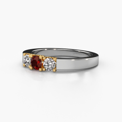 Dieser 3 Stone Ring wird Selina 1 genannt. Diese Art von Ring wird als Memoire ring bezeichnet, da seine Edelsteine in einer durchgehenden Linie angeordnet sind. Dadurch kann er einfach mit anderen Ringen kombiniert werden. Das Band dieses 14 Karat Weißgold Ring ist in einer Kombination aus Granat und Diamant besetzt. Sie können ganz einfach online die Kombination auswählen, die Sie bevorzugen. Wie Sie sehen, wird bei diesem Weißgold Memoire Ring mehre Granat gesetzt. Der Memoire ring steht für Zusammenwirken. Und genau das tun diese Edelsteine, zusammenwirken. Zusammen geben sie dem Band eines moderne Ring einen schönen Effekt! So ein bedeutungsvoller Ring, finden Sie nicht auch? Alle von uns ausgesuchten Granat werden von unserem erfahrenen Goldschiede in Handarbeit eingefasst. Das ist eine präzise Aufgabe, die nur durch die Kombination von purer Handwerkskunst und dem Einsatz neuester Techniken erfolgreich durchgeführt werden kann, um eine optimale Wirkung zu erzielen. Um eine perfekte Lichtreflexion zu erzeugen, müssen alle Edelsteine auf die gleiche Weise perfekt ausgerichtet sein. Während der Fertigung wird der Goldschmied Meister daher ständig die Lichtreflexion überwachen, um zu gewährleisten, dass die Granat perfekt ausgerichtet sind. Das erfordert eine geschickte Hand und viel Geduld, aber dann wird das Endprodukt zu einem echten Kunstwerk. Und genau das ist unsere Mission!Mit unserer modernen Technik können wir Schmuckstücke von höchster Qualität mit größter Sorgfalt für Sie entwerfen und anpassen. Unsere Ringe sind immer um 30 Prozent günstiger als bei anderen Juwelieren. Wir fertigen Ringe auf Bestellung, also müssen wir keine großen Lager unterhalten. Wenn Sie ein bestimmtes Budget haben, beraten wir Sie gerne entsprechend.Unsere Online-Kollektion wird täglich um neue Schmuckdesigns ergänzt. Unser Team von leidenschaftlichen Designern ist bemüht, außergewöhnliche und vielfältige Designs zu kreieren. Haben Sie einen Ring gesehen, der Ihnen gefällt? Setzen Sie sich mit uns in Verbindung. Basierend auf einem guten Preis/Leistungsverhältnis machen wir Ihnen ein Angebot, das Sie nicht ablehnen können!Um es einfacher zu machen, bieten wir eine kostenlose 30-tägige Rücksendung.