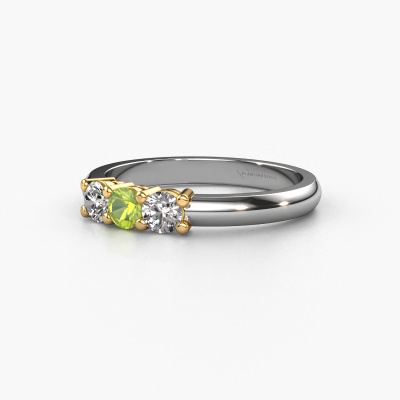Dieser 3 Stone Ring wird Michelle 3 genannt. Diese Art von Ring wird als Memoire ring bezeichnet, da seine Edelsteine in einer durchgehenden Linie angeordnet sind. Dadurch kann er einfach mit anderen Ringen kombiniert werden. Das Band dieses 14 Karat Weißgold Ring ist in einer Kombination aus Peridot und Lab-grown Diamant besetzt. Sie können ganz einfach online die Kombination auswählen, die Sie bevorzugen. Wie Sie sehen, wird bei diesem Weißgold Memoire Ring mehre Peridot gesetzt. Der Memoire ring steht für Zusammenwirken. Und genau das tun diese Edelsteine, zusammenwirken. Zusammen geben sie dem Band eines klassische Ring einen schönen Effekt! So ein bedeutungsvoller Ring, finden Sie nicht auch? Alle von uns ausgesuchten Peridot werden von unserem erfahrenen Goldschiede in Handarbeit eingefasst. Das ist eine präzise Aufgabe, die nur durch die Kombination von purer Handwerkskunst und dem Einsatz neuester Techniken erfolgreich durchgeführt werden kann, um eine optimale Wirkung zu erzielen. Um eine perfekte Lichtreflexion zu erzeugen, müssen alle Edelsteine auf die gleiche Weise perfekt ausgerichtet sein. Während der Fertigung wird der Goldschmied Meister daher ständig die Lichtreflexion überwachen, um zu gewährleisten, dass die Peridot perfekt ausgerichtet sind. Das erfordert eine geschickte Hand und viel Geduld, aber dann wird das Endprodukt zu einem echten Kunstwerk. Und genau das ist unsere Mission!Haben Sie ein bestimmtes Budget? Sie können uns gerne kontaktieren, damit wir Ihre Optionen besprechen können. Wir bieten unsere Ringe zum garantiert besten Preis, denn wir fertigen sie auf Bestellung. Solche Preise finden Sie nirgendwo anders!