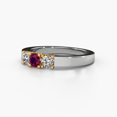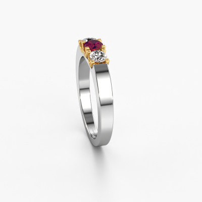 Dieser 3 Stone Ring wird Selina 1 genannt. Diese Art von Ring wird als Memoire ring bezeichnet, da seine Edelsteine in einer durchgehenden Linie angeordnet sind. Dadurch kann er einfach mit anderen Ringen kombiniert werden. Das Band dieses 14 Karat Weißgold Ring ist in einer Kombination aus Rhodolit und Diamant besetzt. Sie können ganz einfach online die Kombination auswählen, die Sie bevorzugen. Wie Sie sehen, wird bei diesem Weißgold Memoire Ring mehre Rhodolit gesetzt. Der Memoire ring steht für Zusammenwirken. Und genau das tun diese Edelsteine, zusammenwirken. Zusammen geben sie dem Band eines moderne Ring einen schönen Effekt! So ein bedeutungsvoller Ring, finden Sie nicht auch? Alle von uns ausgesuchten Rhodolit werden von unserem erfahrenen Goldschiede in Handarbeit eingefasst. Das ist eine präzise Aufgabe, die nur durch die Kombination von purer Handwerkskunst und dem Einsatz neuester Techniken erfolgreich durchgeführt werden kann, um eine optimale Wirkung zu erzielen. Um eine perfekte Lichtreflexion zu erzeugen, müssen alle Edelsteine auf die gleiche Weise perfekt ausgerichtet sein. Während der Fertigung wird der Goldschmied Meister daher ständig die Lichtreflexion überwachen, um zu gewährleisten, dass die Rhodolit perfekt ausgerichtet sind. Das erfordert eine geschickte Hand und viel Geduld, aber dann wird das Endprodukt zu einem echten Kunstwerk. Und genau das ist unsere Mission!Mit unserer modernen Technik können wir Schmuckstücke von höchster Qualität mit größter Sorgfalt für Sie entwerfen und anpassen. Unsere Ringe sind immer um 30 Prozent günstiger als bei anderen Juwelieren. Wir fertigen Ringe auf Bestellung, also müssen wir keine großen Lager unterhalten. Wenn Sie ein bestimmtes Budget haben, beraten wir Sie gerne entsprechend.Unsere Online-Kollektion wird täglich um neue Schmuckdesigns ergänzt. Unser Team von leidenschaftlichen Designern ist bemüht, außergewöhnliche und vielfältige Designs zu kreieren. Haben Sie einen Ring gesehen, der Ihnen gefällt? Setzen Sie sich mit uns in Verbindung. Basierend auf einem guten Preis/Leistungsverhältnis machen wir Ihnen ein Angebot, das Sie nicht ablehnen können!Um es einfacher zu machen, bieten wir eine kostenlose 30-tägige Rücksendung.