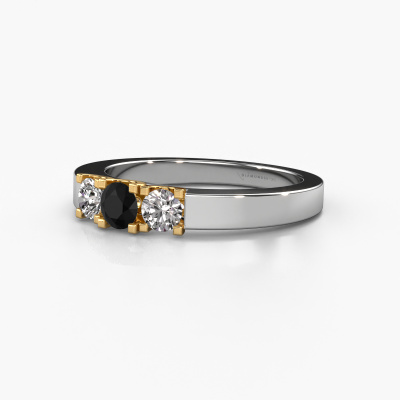 Dieser 3 Stone Ring wird Selina 1 genannt. Diese Art von Ring wird als Memoire ring bezeichnet, da seine Edelsteine in einer durchgehenden Linie angeordnet sind. Dadurch kann er einfach mit anderen Ringen kombiniert werden. Das Band dieses 14 Karat Weißgold Ring ist in einer Kombination aus Schwarz Diamant und Diamant besetzt. Sie können ganz einfach online die Kombination auswählen, die Sie bevorzugen. Wie Sie sehen, wird bei diesem Weißgold Memoire Ring mehre Schwarze Diamanten gesetzt. Der Memoire ring steht für Zusammenwirken. Und genau das tun diese Edelsteine, zusammenwirken. Zusammen geben sie dem Band eines moderne Ring einen schönen Effekt! So ein bedeutungsvoller Ring, finden Sie nicht auch? Alle von uns ausgesuchten Schwarze Diamanten werden von unserem erfahrenen Goldschiede in Handarbeit eingefasst. Das ist eine präzise Aufgabe, die nur durch die Kombination von purer Handwerkskunst und dem Einsatz neuester Techniken erfolgreich durchgeführt werden kann, um eine optimale Wirkung zu erzielen. Um eine perfekte Lichtreflexion zu erzeugen, müssen alle Edelsteine auf die gleiche Weise perfekt ausgerichtet sein. Während der Fertigung wird der Goldschmied Meister daher ständig die Lichtreflexion überwachen, um zu gewährleisten, dass die Schwarze Diamanten perfekt ausgerichtet sind. Das erfordert eine geschickte Hand und viel Geduld, aber dann wird das Endprodukt zu einem echten Kunstwerk. Und genau das ist unsere Mission!Mit unserer modernen Technik können wir Schmuckstücke von höchster Qualität mit größter Sorgfalt für Sie entwerfen und anpassen. Unsere Ringe sind immer um 30 Prozent günstiger als bei anderen Juwelieren. Wir fertigen Ringe auf Bestellung, also müssen wir keine großen Lager unterhalten. Wenn Sie ein bestimmtes Budget haben, beraten wir Sie gerne entsprechend.Unsere Online-Kollektion wird täglich um neue Schmuckdesigns ergänzt. Unser Team von leidenschaftlichen Designern ist bemüht, außergewöhnliche und vielfältige Designs zu kreieren. Haben Sie einen Ring gesehen, der Ihnen gefällt? Setzen Sie sich mit uns in Verbindung. Basierend auf einem guten Preis/Leistungsverhältnis machen wir Ihnen ein Angebot, das Sie nicht ablehnen können!Um es einfacher zu machen, bieten wir eine kostenlose 30-tägige Rücksendung.