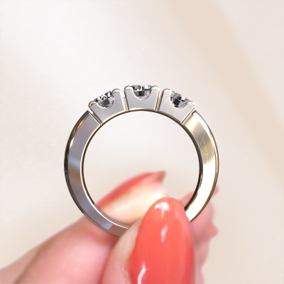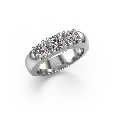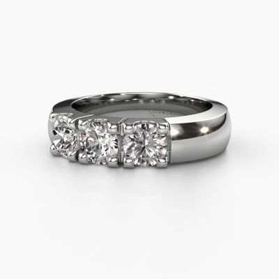 Dieser 3 Stone Ring wird Rianne 3 genannt. Diese Art von Ring wird als Memoire ring bezeichnet, da seine Edelsteine in einer durchgehenden Linie angeordnet sind. Dadurch kann er einfach mit anderen Ringen kombiniert werden. Das Band dieses 14 Karat Weißgold Ring ist in einer Kombination aus Diamant und Diamant besetzt. Sie können ganz einfach online die Kombination auswählen, die Sie bevorzugen. Wie Sie sehen, wird bei diesem Weißgold Memoire Ring mehre Diamanten gesetzt. Der Memoire ring steht für Zusammenwirken. Und genau das tun diese Edelsteine, zusammenwirken. Zusammen geben sie dem Band eines klassische Ring einen schönen Effekt! So ein bedeutungsvoller Ring, finden Sie nicht auch? Alle von uns ausgesuchten Diamanten werden von unserem erfahrenen Goldschiede in Handarbeit eingefasst. Das ist eine präzise Aufgabe, die nur durch die Kombination von purer Handwerkskunst und dem Einsatz neuester Techniken erfolgreich durchgeführt werden kann, um eine optimale Wirkung zu erzielen. Um eine perfekte Lichtreflexion zu erzeugen, müssen alle Edelsteine auf die gleiche Weise perfekt ausgerichtet sein. Während der Fertigung wird der Goldschmied Meister daher ständig die Lichtreflexion überwachen, um zu gewährleisten, dass die Diamanten perfekt ausgerichtet sind. Das erfordert eine geschickte Hand und viel Geduld, aber dann wird das Endprodukt zu einem echten Kunstwerk. Und genau das ist unsere Mission!Nach Erhalt Ihrer Bestellung beginnen unsere Goldschmiede mit Leidenschaft den kreativen Prozess und fertigen Ihren Ring in unserem eigenen Studio. Da wir keine großen Lager haben, werden diese Kosten nicht an Sie weitergegeben. Unsere Preisgestaltung ist der Beweis dafür! Wir bieten Schmuck zum niedrigsten Preis, garantiert.Unser Team von talentierten, leidenschaftlichen Designern fügt unserer Online-Kollektion täglich neue Ringe-Designs hinzu. Unser Ziel dabei ist es, Ihnen eine große Vielfalt an Schmuckstücken anbieten zu können. Bitte zögern Sie nicht, ein Angebot anzufordern, wenn Sie spezielle Wünsche für Ihren Ring haben. Wir garantieren Ihnen ein Angebot, das Sie nicht ablehnen können.Um es einfacher zu machen, bieten wir eine kostenlose 30-tägige Rücksendung.