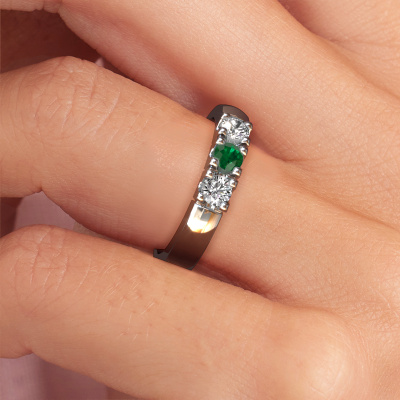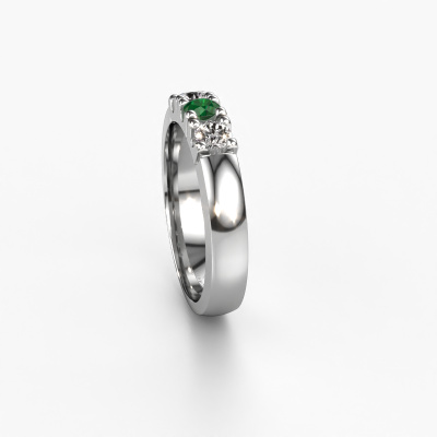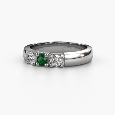 Dieser 3 Stone Ring wird Rianne 3 genannt. Diese Art von Ring wird als Memoire ring bezeichnet, da seine Edelsteine in einer durchgehenden Linie angeordnet sind. Dadurch kann er einfach mit anderen Ringen kombiniert werden. Das Band dieses 14 Karat Weißgold Ring ist in einer Kombination aus Smaragd und Diamant besetzt. Sie können ganz einfach online die Kombination auswählen, die Sie bevorzugen. Wie Sie sehen, wird bei diesem Weißgold Memoire Ring mehre Smaragd gesetzt. Der Memoire ring steht für Zusammenwirken. Und genau das tun diese Edelsteine, zusammenwirken. Zusammen geben sie dem Band eines klassische Ring einen schönen Effekt! So ein bedeutungsvoller Ring, finden Sie nicht auch? Alle von uns ausgesuchten Smaragd werden von unserem erfahrenen Goldschiede in Handarbeit eingefasst. Das ist eine präzise Aufgabe, die nur durch die Kombination von purer Handwerkskunst und dem Einsatz neuester Techniken erfolgreich durchgeführt werden kann, um eine optimale Wirkung zu erzielen. Um eine perfekte Lichtreflexion zu erzeugen, müssen alle Edelsteine auf die gleiche Weise perfekt ausgerichtet sein. Während der Fertigung wird der Goldschmied Meister daher ständig die Lichtreflexion überwachen, um zu gewährleisten, dass die Smaragd perfekt ausgerichtet sind. Das erfordert eine geschickte Hand und viel Geduld, aber dann wird das Endprodukt zu einem echten Kunstwerk. Und genau das ist unsere Mission!Nach Erhalt Ihrer Bestellung beginnen unsere Goldschmiede mit Leidenschaft den kreativen Prozess und fertigen Ihren Ring in unserem eigenen Studio. Da wir keine großen Lager haben, werden diese Kosten nicht an Sie weitergegeben. Unsere Preisgestaltung ist der Beweis dafür! Wir bieten Schmuck zum niedrigsten Preis, garantiert.Unser Team von talentierten, leidenschaftlichen Designern fügt unserer Online-Kollektion täglich neue Ringe-Designs hinzu. Unser Ziel dabei ist es, Ihnen eine große Vielfalt an Schmuckstücken anbieten zu können. Bitte zögern Sie nicht, ein Angebot anzufordern, wenn Sie spezielle Wünsche für Ihren Ring haben. Wir garantieren Ihnen ein Angebot, das Sie nicht ablehnen können.Um es einfacher zu machen, bieten wir eine kostenlose 30-tägige Rücksendung.