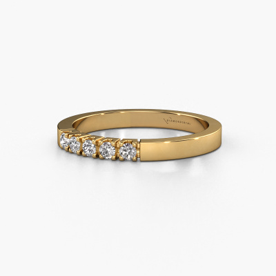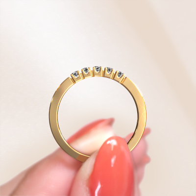 Dieser 5 Stone Ring wird Dana 5 genannt. Diese Art von Ring wird als Memoire ring bezeichnet, da seine Edelsteine in einer durchgehenden Linie angeordnet sind. Dadurch kann er einfach mit anderen Ringen kombiniert werden. Das Band dieses 14 Karat Gold Ring ist in einer Kombination aus Diamant und Diamant besetzt. Sie können ganz einfach online die Kombination auswählen, die Sie bevorzugen. Wie Sie sehen, wird bei diesem Gold Memoire Ring mehre Diamanten gesetzt. Der Memoire ring steht für Zusammenwirken. Und genau das tun diese Edelsteine, zusammenwirken. Zusammen geben sie dem Band eines moderne Ring einen schönen Effekt! So ein bedeutungsvoller Ring, finden Sie nicht auch? Alle von uns ausgesuchten Diamanten werden von unserem erfahrenen Goldschiede in Handarbeit eingefasst. Das ist eine präzise Aufgabe, die nur durch die Kombination von purer Handwerkskunst und dem Einsatz neuester Techniken erfolgreich durchgeführt werden kann, um eine optimale Wirkung zu erzielen. Um eine perfekte Lichtreflexion zu erzeugen, müssen alle Edelsteine auf die gleiche Weise perfekt ausgerichtet sein. Während der Fertigung wird der Goldschmied Meister daher ständig die Lichtreflexion überwachen, um zu gewährleisten, dass die Diamanten perfekt ausgerichtet sind. Das erfordert eine geschickte Hand und viel Geduld, aber dann wird das Endprodukt zu einem echten Kunstwerk. Und genau das ist unsere Mission!Da wir unsere eigenen Ringe entwerfen und liefern, können wir Ihnen einen Ring zu einem Preis anbieten, den Sie nirgendwo anders finden. Ein Ring wird auf Bestellung angefertigt, wodurch kein überschüssiges Material anfällt. So können wir Ihnen ein gutes Angebot zum besten Preis machen. Wir verstehen, dass es sich riskant anfühlt, Ihren Ring online zu kaufen. Jedoch helfen wir Ihnen gerne beim Designprozess unter Berücksichtigung Ihres Budgets.Unsere Online-Kollektion wird täglich um neue Schmuckdesigns ergänzt. Unser Team von leidenschaftlichen Designern ist bemüht, außergewöhnliche und vielfältige Designs zu kreieren. Haben Sie einen Ring gesehen, der Ihnen gefällt? Setzen Sie sich mit uns in Verbindung. Basierend auf einem guten Preis/Leistungsverhältnis machen wir Ihnen ein Angebot, das Sie nicht ablehnen können!Um es einfacher zu machen, bieten wir eine kostenlose 30-tägige Rücksendung.