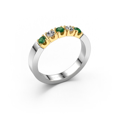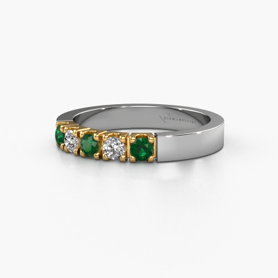 Dieser 5 Stone Ring wird Dana 5 genannt. Diese Art von Ring wird als Memoire ring bezeichnet, da seine Edelsteine in einer durchgehenden Linie angeordnet sind. Dadurch kann er einfach mit anderen Ringen kombiniert werden. Das Band dieses 14 Karat Weißgold Ring ist in einer Kombination aus Smaragd und Diamant besetzt. Sie können ganz einfach online die Kombination auswählen, die Sie bevorzugen. Wie Sie sehen, wird bei diesem Weißgold Memoire Ring mehre Smaragd gesetzt. Der Memoire ring steht für Zusammenwirken. Und genau das tun diese Edelsteine, zusammenwirken. Zusammen geben sie dem Band eines moderne Ring einen schönen Effekt! So ein bedeutungsvoller Ring, finden Sie nicht auch? Alle von uns ausgesuchten Smaragd werden von unserem erfahrenen Goldschiede in Handarbeit eingefasst. Das ist eine präzise Aufgabe, die nur durch die Kombination von purer Handwerkskunst und dem Einsatz neuester Techniken erfolgreich durchgeführt werden kann, um eine optimale Wirkung zu erzielen. Um eine perfekte Lichtreflexion zu erzeugen, müssen alle Edelsteine auf die gleiche Weise perfekt ausgerichtet sein. Während der Fertigung wird der Goldschmied Meister daher ständig die Lichtreflexion überwachen, um zu gewährleisten, dass die Smaragd perfekt ausgerichtet sind. Das erfordert eine geschickte Hand und viel Geduld, aber dann wird das Endprodukt zu einem echten Kunstwerk. Und genau das ist unsere Mission!Da wir unsere eigenen Ringe entwerfen und liefern, können wir Ihnen einen Ring zu einem Preis anbieten, den Sie nirgendwo anders finden. Ein Ring wird auf Bestellung angefertigt, wodurch kein überschüssiges Material anfällt. So können wir Ihnen ein gutes Angebot zum besten Preis machen. Wir verstehen, dass es sich riskant anfühlt, Ihren Ring online zu kaufen. Jedoch helfen wir Ihnen gerne beim Designprozess unter Berücksichtigung Ihres Budgets.Unsere Online-Kollektion wird täglich um neue Schmuckdesigns ergänzt. Unser Team von leidenschaftlichen Designern ist bemüht, außergewöhnliche und vielfältige Designs zu kreieren. Haben Sie einen Ring gesehen, der Ihnen gefällt? Setzen Sie sich mit uns in Verbindung. Basierend auf einem guten Preis/Leistungsverhältnis machen wir Ihnen ein Angebot, das Sie nicht ablehnen können!Um es einfacher zu machen, bieten wir eine kostenlose 30-tägige Rücksendung.