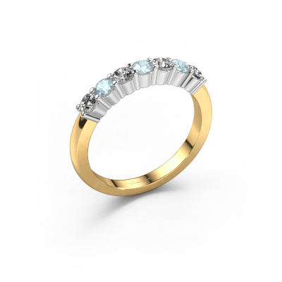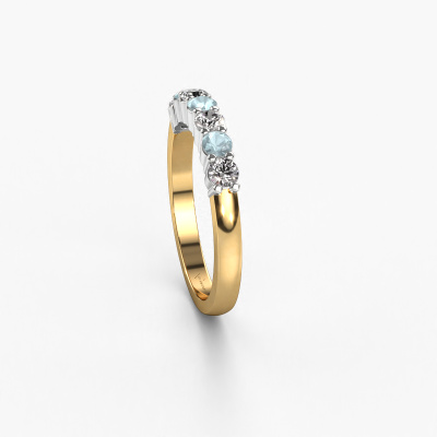 Dieser 7 Stone Ring wird Yasmin 7 genannt. Diese Art von Ring wird als Memoire ring bezeichnet, da seine Edelsteine in einer durchgehenden Linie angeordnet sind. Dadurch kann er einfach mit anderen Ringen kombiniert werden. Das Band dieses 14 Karat Gold Ring ist in einer Kombination aus Aquamarin und Lab-grown Diamant besetzt. Sie können ganz einfach online die Kombination auswählen, die Sie bevorzugen. Wie Sie sehen, wird bei diesem Gold Memoire Ring mehre Aquamarins gesetzt. Der Memoire ring steht für Zusammenwirken. Und genau das tun diese Edelsteine, zusammenwirken. Zusammen geben sie dem Band eines klassische Ring einen schönen Effekt! So ein bedeutungsvoller Ring, finden Sie nicht auch? Alle von uns ausgesuchten Aquamarins werden von unserem erfahrenen Goldschiede in Handarbeit eingefasst. Das ist eine präzise Aufgabe, die nur durch die Kombination von purer Handwerkskunst und dem Einsatz neuester Techniken erfolgreich durchgeführt werden kann, um eine optimale Wirkung zu erzielen. Um eine perfekte Lichtreflexion zu erzeugen, müssen alle Edelsteine auf die gleiche Weise perfekt ausgerichtet sein. Während der Fertigung wird der Goldschmied Meister daher ständig die Lichtreflexion überwachen, um zu gewährleisten, dass die Aquamarins perfekt ausgerichtet sind. Das erfordert eine geschickte Hand und viel Geduld, aber dann wird das Endprodukt zu einem echten Kunstwerk. Und genau das ist unsere Mission!Nach Erhalt Ihrer Bestellung beginnen unsere Goldschmiede mit Leidenschaft den kreativen Prozess und fertigen Ihren Ring in unserem eigenen Studio. Da wir keine großen Lager haben, werden diese Kosten nicht an Sie weitergegeben. Unsere Preisgestaltung ist der Beweis dafür! Wir bieten Schmuck zum niedrigsten Preis, garantiert.Unser Team von talentierten, leidenschaftlichen Designern fügt unserer Online-Kollektion täglich neue Ringe-Designs hinzu. Unser Ziel dabei ist es, Ihnen eine große Vielfalt an Schmuckstücken anbieten zu können. Bitte zögern Sie nicht, ein Angebot anzufordern, wenn Sie spezielle Wünsche für Ihren Ring haben. Wir garantieren Ihnen ein Angebot, das Sie nicht ablehnen können.Um es einfacher zu machen, bieten wir eine kostenlose 30-tägige Rücksendung.