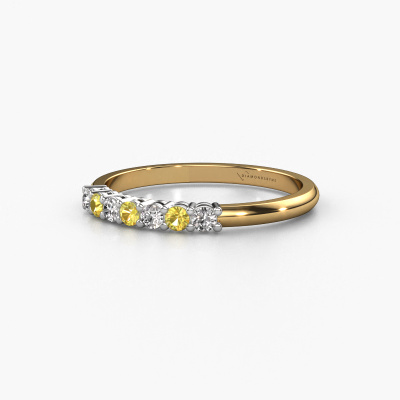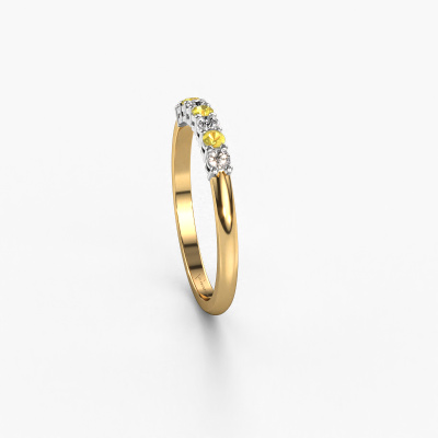Dieser 7 Stone Ring wird Michelle 7 genannt. Diese Art von Ring wird als Memoire ring bezeichnet, da seine Edelsteine in einer durchgehenden Linie angeordnet sind. Dadurch kann er einfach mit anderen Ringen kombiniert werden. Das Band dieses 14 Karat Gold Ring ist in einer Kombination aus Gelb Saphir und Diamant besetzt. Sie können ganz einfach online die Kombination auswählen, die Sie bevorzugen. Wie Sie sehen, wird bei diesem Gold Memoire Ring mehre Gelb Saphir gesetzt. Der Memoire ring steht für Zusammenwirken. Und genau das tun diese Edelsteine, zusammenwirken. Zusammen geben sie dem Band eines klassische Ring einen schönen Effekt! So ein bedeutungsvoller Ring, finden Sie nicht auch? Alle von uns ausgesuchten Gelb Saphir werden von unserem erfahrenen Goldschiede in Handarbeit eingefasst. Das ist eine präzise Aufgabe, die nur durch die Kombination von purer Handwerkskunst und dem Einsatz neuester Techniken erfolgreich durchgeführt werden kann, um eine optimale Wirkung zu erzielen. Um eine perfekte Lichtreflexion zu erzeugen, müssen alle Edelsteine auf die gleiche Weise perfekt ausgerichtet sein. Während der Fertigung wird der Goldschmied Meister daher ständig die Lichtreflexion überwachen, um zu gewährleisten, dass die Gelb Saphir perfekt ausgerichtet sind. Das erfordert eine geschickte Hand und viel Geduld, aber dann wird das Endprodukt zu einem echten Kunstwerk. Und genau das ist unsere Mission!Nach Erhalt Ihrer Bestellung beginnen unsere Goldschmiede mit Leidenschaft den kreativen Prozess und fertigen Ihren Ring in unserem eigenen Studio. Da wir keine großen Lager haben, werden diese Kosten nicht an Sie weitergegeben. Unsere Preisgestaltung ist der Beweis dafür! Wir bieten Schmuck zum niedrigsten Preis, garantiert.