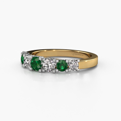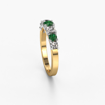 Dieser 7 Stone Ring wird Selina 3 genannt. Diese Art von Ring wird als Memoire ring bezeichnet, da seine Edelsteine in einer durchgehenden Linie angeordnet sind. Dadurch kann er einfach mit anderen Ringen kombiniert werden. Das Band dieses 14 Karat Gold Ring ist in einer Kombination aus Smaragd und Diamant besetzt. Sie können ganz einfach online die Kombination auswählen, die Sie bevorzugen. Wie Sie sehen, wird bei diesem Gold Memoire Ring mehre Smaragd gesetzt. Der Memoire ring steht für Zusammenwirken. Und genau das tun diese Edelsteine, zusammenwirken. Zusammen geben sie dem Band eines moderne Ring einen schönen Effekt! So ein bedeutungsvoller Ring, finden Sie nicht auch? Alle von uns ausgesuchten Smaragd werden von unserem erfahrenen Goldschiede in Handarbeit eingefasst. Das ist eine präzise Aufgabe, die nur durch die Kombination von purer Handwerkskunst und dem Einsatz neuester Techniken erfolgreich durchgeführt werden kann, um eine optimale Wirkung zu erzielen. Um eine perfekte Lichtreflexion zu erzeugen, müssen alle Edelsteine auf die gleiche Weise perfekt ausgerichtet sein. Während der Fertigung wird der Goldschmied Meister daher ständig die Lichtreflexion überwachen, um zu gewährleisten, dass die Smaragd perfekt ausgerichtet sind. Das erfordert eine geschickte Hand und viel Geduld, aber dann wird das Endprodukt zu einem echten Kunstwerk. Und genau das ist unsere Mission!Da wir unsere eigenen Ringe entwerfen und liefern, können wir Ihnen einen Ring zu einem Preis anbieten, den Sie nirgendwo anders finden. Ein Ring wird auf Bestellung angefertigt, wodurch kein überschüssiges Material anfällt. So können wir Ihnen ein gutes Angebot zum besten Preis machen. Wir verstehen, dass es sich riskant anfühlt, Ihren Ring online zu kaufen. Jedoch helfen wir Ihnen gerne beim Designprozess unter Berücksichtigung Ihres Budgets.Unser Team von talentierten, leidenschaftlichen Designern fügt unserer Online-Kollektion täglich neue Ringe-Designs hinzu. Unser Ziel dabei ist es, Ihnen eine große Vielfalt an Schmuckstücken anbieten zu können. Bitte zögern Sie nicht, ein Angebot anzufordern, wenn Sie spezielle Wünsche für Ihren Ring haben. Wir garantieren Ihnen ein Angebot, das Sie nicht ablehnen können.Um es einfacher zu machen, bieten wir eine kostenlose 30-tägige Rücksendung.
