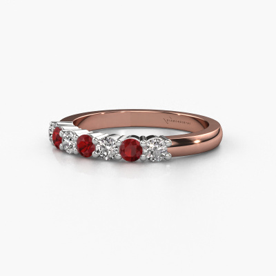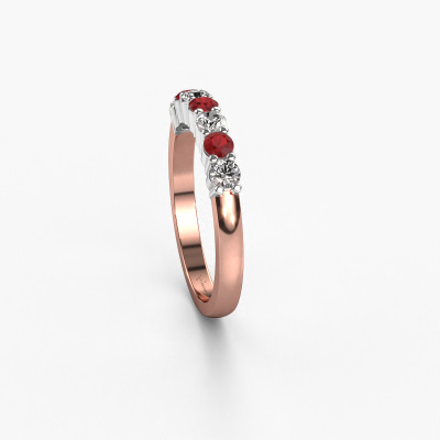 Dieser 7 Stone Ring wird Yasmin 7 genannt. Diese Art von Ring wird als Memoire ring bezeichnet, da seine Edelsteine in einer durchgehenden Linie angeordnet sind. Dadurch kann er einfach mit anderen Ringen kombiniert werden. Das Band dieses 14 Karat Roségold Ring ist in einer Kombination aus Rubin und Lab-grown Diamant besetzt. Sie können ganz einfach online die Kombination auswählen, die Sie bevorzugen. Wie Sie sehen, wird bei diesem Roségold Memoire Ring mehre Rubin gesetzt. Der Memoire ring steht für Zusammenwirken. Und genau das tun diese Edelsteine, zusammenwirken. Zusammen geben sie dem Band eines klassische Ring einen schönen Effekt! So ein bedeutungsvoller Ring, finden Sie nicht auch? Alle von uns ausgesuchten Rubin werden von unserem erfahrenen Goldschiede in Handarbeit eingefasst. Das ist eine präzise Aufgabe, die nur durch die Kombination von purer Handwerkskunst und dem Einsatz neuester Techniken erfolgreich durchgeführt werden kann, um eine optimale Wirkung zu erzielen. Um eine perfekte Lichtreflexion zu erzeugen, müssen alle Edelsteine auf die gleiche Weise perfekt ausgerichtet sein. Während der Fertigung wird der Goldschmied Meister daher ständig die Lichtreflexion überwachen, um zu gewährleisten, dass die Rubin perfekt ausgerichtet sind. Das erfordert eine geschickte Hand und viel Geduld, aber dann wird das Endprodukt zu einem echten Kunstwerk. Und genau das ist unsere Mission!Nach Erhalt Ihrer Bestellung beginnen unsere Goldschmiede mit Leidenschaft den kreativen Prozess und fertigen Ihren Ring in unserem eigenen Studio. Da wir keine großen Lager haben, werden diese Kosten nicht an Sie weitergegeben. Unsere Preisgestaltung ist der Beweis dafür! Wir bieten Schmuck zum niedrigsten Preis, garantiert.Unser Team von talentierten, leidenschaftlichen Designern fügt unserer Online-Kollektion täglich neue Ringe-Designs hinzu. Unser Ziel dabei ist es, Ihnen eine große Vielfalt an Schmuckstücken anbieten zu können. Bitte zögern Sie nicht, ein Angebot anzufordern, wenn Sie spezielle Wünsche für Ihren Ring haben. Wir garantieren Ihnen ein Angebot, das Sie nicht ablehnen können.Um es einfacher zu machen, bieten wir eine kostenlose 30-tägige Rücksendung.