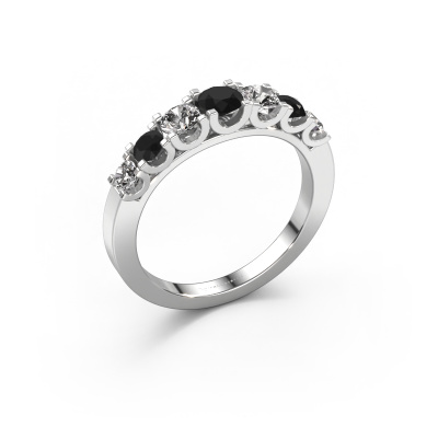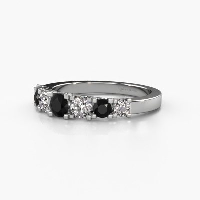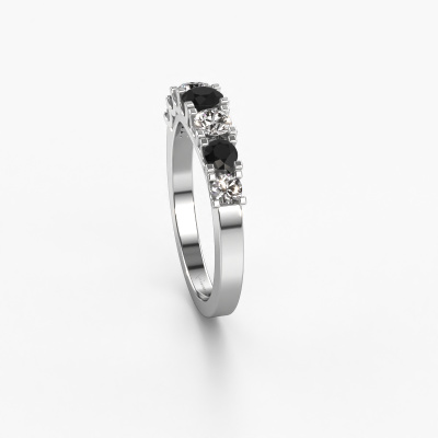 Dieser 7 Stone Ring wird Selina 3 genannt. Diese Art von Ring wird als Memoire ring bezeichnet, da seine Edelsteine in einer durchgehenden Linie angeordnet sind. Dadurch kann er einfach mit anderen Ringen kombiniert werden. Das Band dieses 14 Karat Weißgold Ring ist in einer Kombination aus Schwarz Diamant und Diamant besetzt. Sie können ganz einfach online die Kombination auswählen, die Sie bevorzugen. Wie Sie sehen, wird bei diesem Weißgold Memoire Ring mehre Schwarze Diamanten gesetzt. Der Memoire ring steht für Zusammenwirken. Und genau das tun diese Edelsteine, zusammenwirken. Zusammen geben sie dem Band eines moderne Ring einen schönen Effekt! So ein bedeutungsvoller Ring, finden Sie nicht auch? Alle von uns ausgesuchten Schwarze Diamanten werden von unserem erfahrenen Goldschiede in Handarbeit eingefasst. Das ist eine präzise Aufgabe, die nur durch die Kombination von purer Handwerkskunst und dem Einsatz neuester Techniken erfolgreich durchgeführt werden kann, um eine optimale Wirkung zu erzielen. Um eine perfekte Lichtreflexion zu erzeugen, müssen alle Edelsteine auf die gleiche Weise perfekt ausgerichtet sein. Während der Fertigung wird der Goldschmied Meister daher ständig die Lichtreflexion überwachen, um zu gewährleisten, dass die Schwarze Diamanten perfekt ausgerichtet sind. Das erfordert eine geschickte Hand und viel Geduld, aber dann wird das Endprodukt zu einem echten Kunstwerk. Und genau das ist unsere Mission!Da wir unsere eigenen Ringe entwerfen und liefern, können wir Ihnen einen Ring zu einem Preis anbieten, den Sie nirgendwo anders finden. Ein Ring wird auf Bestellung angefertigt, wodurch kein überschüssiges Material anfällt. So können wir Ihnen ein gutes Angebot zum besten Preis machen. Wir verstehen, dass es sich riskant anfühlt, Ihren Ring online zu kaufen. Jedoch helfen wir Ihnen gerne beim Designprozess unter Berücksichtigung Ihres Budgets.Unser Team von talentierten, leidenschaftlichen Designern fügt unserer Online-Kollektion täglich neue Ringe-Designs hinzu. Unser Ziel dabei ist es, Ihnen eine große Vielfalt an Schmuckstücken anbieten zu können. Bitte zögern Sie nicht, ein Angebot anzufordern, wenn Sie spezielle Wünsche für Ihren Ring haben. Wir garantieren Ihnen ein Angebot, das Sie nicht ablehnen können.Um es einfacher zu machen, bieten wir eine kostenlose 30-tägige Rücksendung.