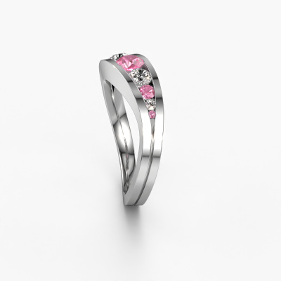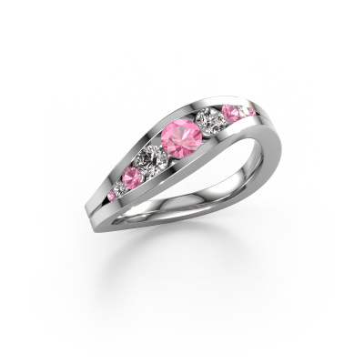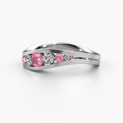 Dieser Ring namens Sigrid 2 besteht aus 14 Karat Weißgold und ist mit Pink Saphir besetzt. Sind Sie auf der Suche nach einem einzigartigen Weißgold Ring mit moderner Note? Dann könnte dieser Ring zu Ihnen passen. Einfach nach Ihren Wünschen anpassen. Er passt zur zeitgenössischen, modernen Frau. Dieser 9 Stone Ring ist mit wunderschönen Pink Saphir besetzt. Er wurde sorgfältig ausgewählt. Weil Ihr Ring mit nichts als dem atemberaubendsten Edelstein gekrönt werden soll. Unser erfahrener Goldschiede kreiert Ihren Ring in unserem eigenen Studio, wo der Pink Saphir mit großer Sorgfalt gesetzt wird. Der Ring wird dann perfekt poliert, um einen atemberaubenden Ring zu erhalten. Durch die Kombination modernster Technik mit uralter Handwerkskunst können wir alle Ringe in unserem eigenen Studio anfertigen. Jedes Schmuckstück wird auf Anfrage gefertigt. Das ist vorteilhaft, weil wir Ihnen dadurch einen Preis anbieten können, den Sie nirgendwo anders finden.Unser Team von talentierten, leidenschaftlichen Designern fügt unserer Online-Kollektion täglich neue Ring-Designs hinzu. Unser Ziel dabei ist es, Ihnen eine große Vielfalt an Schmuckstücken anbieten zu können. Bitte zögern Sie nicht, ein Angebot anzufordern, wenn Sie spezielle Wünsche für Ihren Ring haben. Wir garantieren Ihnen ein Angebot, das Sie nicht ablehnen können.Um es einfacher zu machen, bieten wir eine kostenlose 30-tägige Rücksendung.