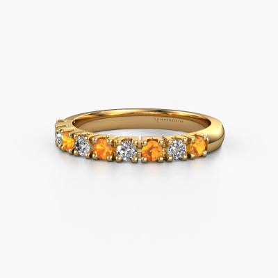 Dieser 9 Stone Ring wird Rianne 9 genannt. Diese Art von Ring wird als Memoire ring bezeichnet, da seine Edelsteine in einer durchgehenden Linie angeordnet sind. Dadurch kann er einfach mit anderen Ringen kombiniert werden. Das Band dieses 14 Karat Gold Ring ist in einer Kombination aus Citrin und Diamant besetzt. Sie können ganz einfach online die Kombination auswählen, die Sie bevorzugen. Wie Sie sehen, wird bei diesem Gold Memoire Ring mehre Citrin gesetzt. Der Memoire ring steht für Zusammenwirken. Und genau das tun diese Edelsteine, zusammenwirken. Zusammen geben sie dem Band eines klassische Ring einen schönen Effekt! So ein bedeutungsvoller Ring, finden Sie nicht auch? Alle von uns ausgesuchten Citrin werden von unserem erfahrenen Goldschiede in Handarbeit eingefasst. Das ist eine präzise Aufgabe, die nur durch die Kombination von purer Handwerkskunst und dem Einsatz neuester Techniken erfolgreich durchgeführt werden kann, um eine optimale Wirkung zu erzielen. Um eine perfekte Lichtreflexion zu erzeugen, müssen alle Edelsteine auf die gleiche Weise perfekt ausgerichtet sein. Während der Fertigung wird der Goldschmied Meister daher ständig die Lichtreflexion überwachen, um zu gewährleisten, dass die Citrin perfekt ausgerichtet sind. Das erfordert eine geschickte Hand und viel Geduld, aber dann wird das Endprodukt zu einem echten Kunstwerk. Und genau das ist unsere Mission!Haben Sie ein bestimmtes Budget? Sie können uns gerne kontaktieren, damit wir Ihre Optionen besprechen können. Wir bieten unsere Ringe zum garantiert besten Preis, denn wir fertigen sie auf Bestellung. Solche Preise finden Sie nirgendwo anders!